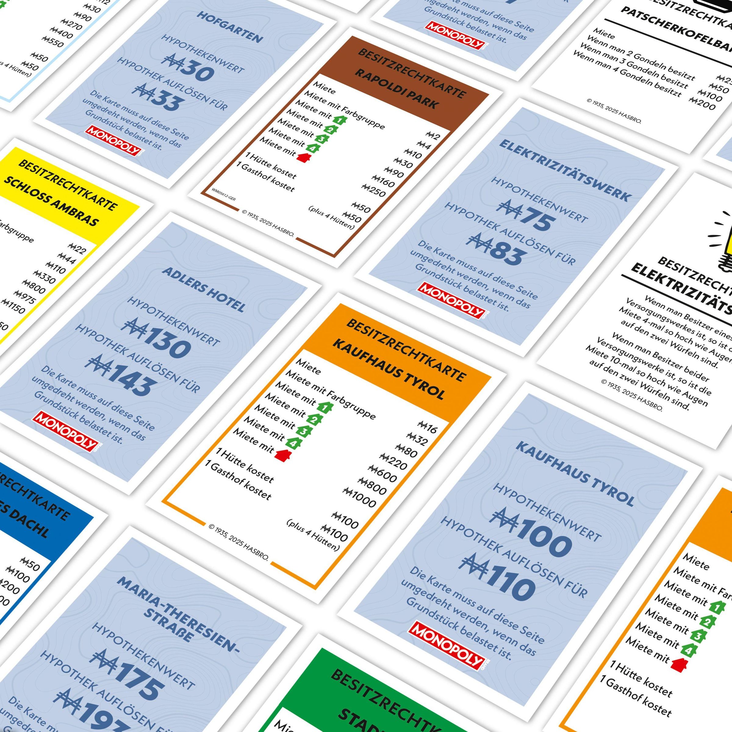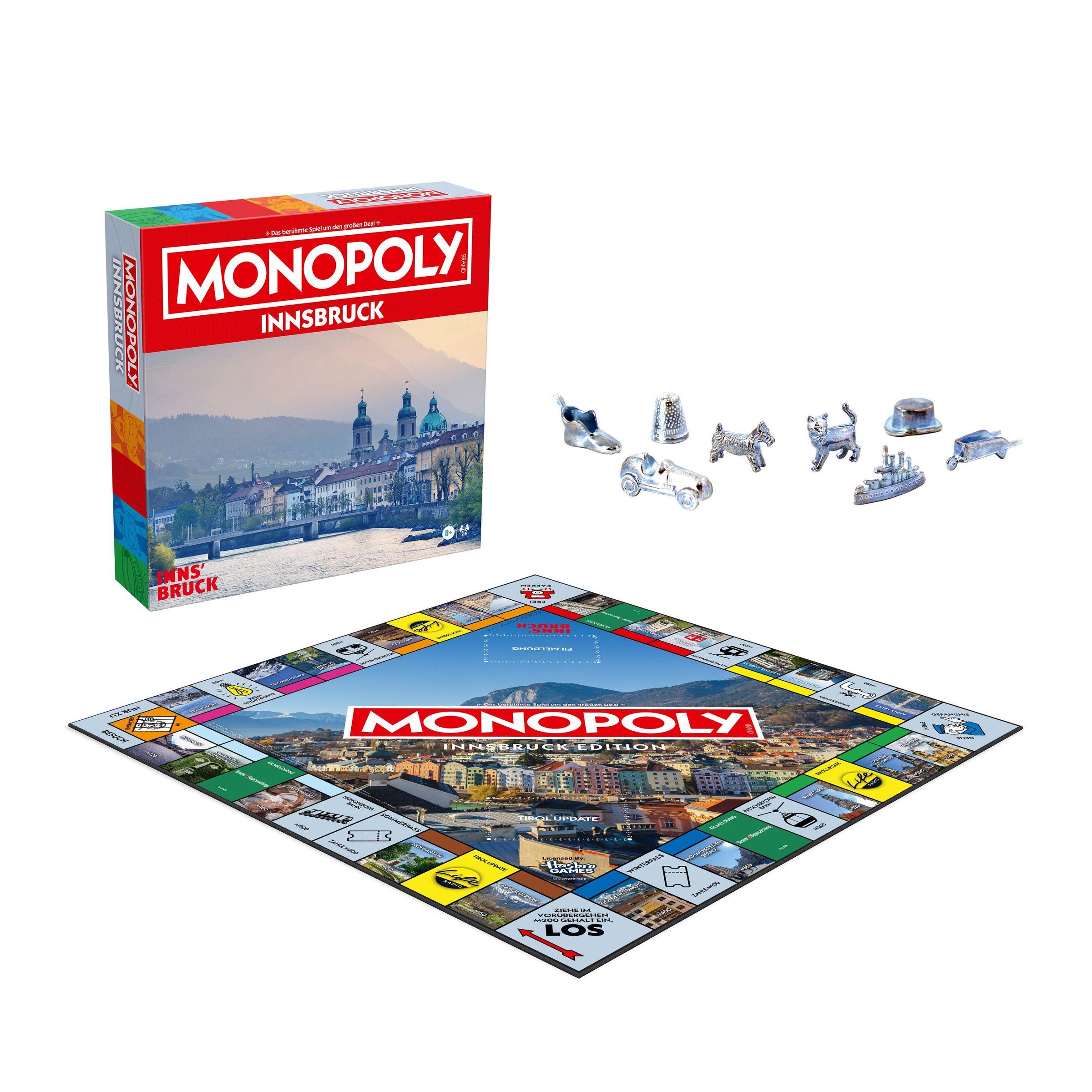 Mit der neuen MONOPOLY Innsbruck Edition begibst du dich auf eine spannende Reise durch die Tiroler Landeshauptstadt und entdeckst die schönsten Ecken auf spielerische Weise. Hier kannst du nicht nur flanieren, sondern auch investieren. Erwirb berühmte Sehenswürdigkeiten, lokale Betriebe und beliebte Plätze, baue Häuser und Hotels und bring deine Mitspieler mit klugen Schachzügen ins Schwitzen. MONOPOLY Innsbruck vereint Tradition und Moderne - perfekt für alle, die der Stadt verbunden sind oder sie ganz neu erleben wollen.