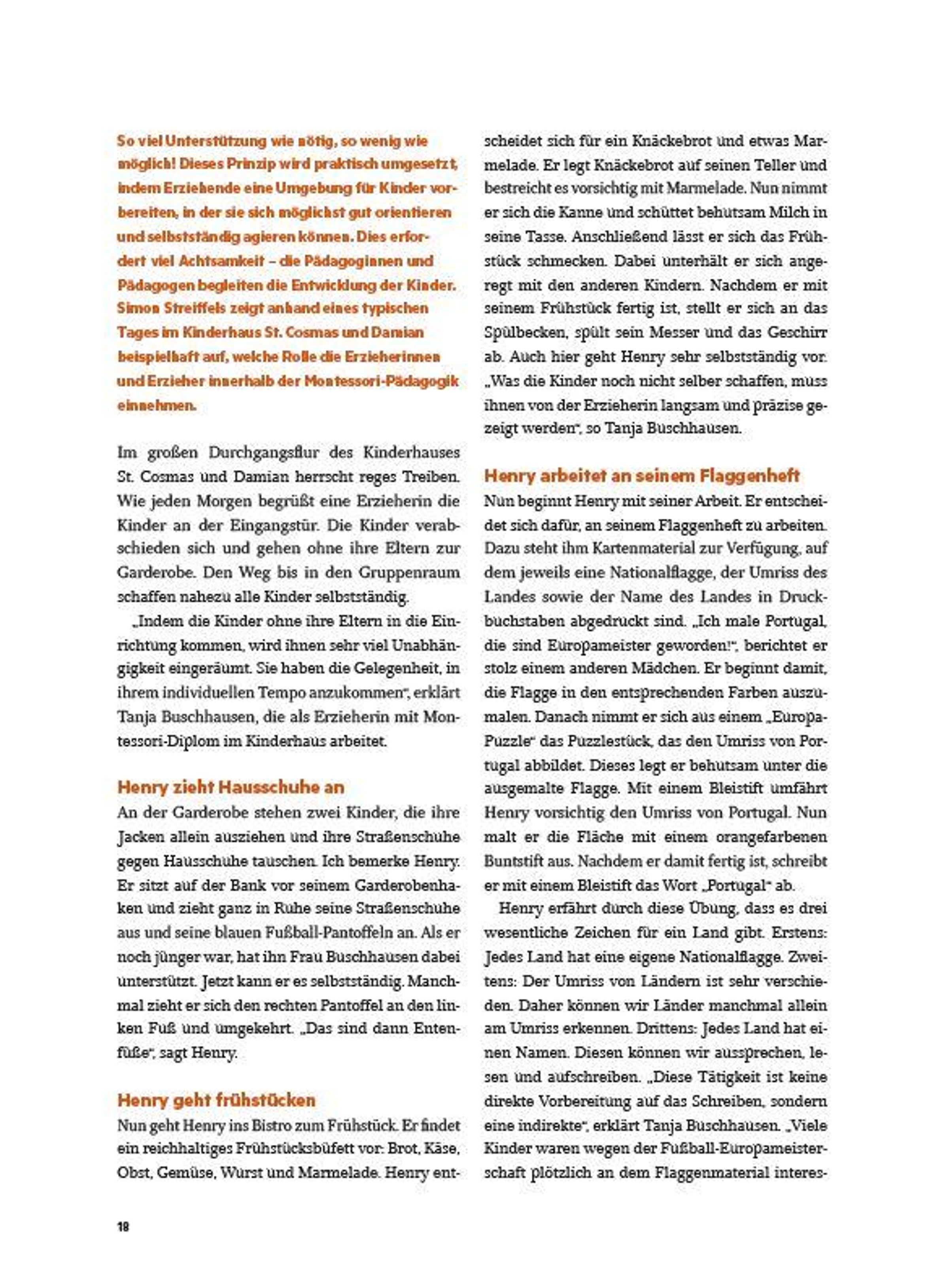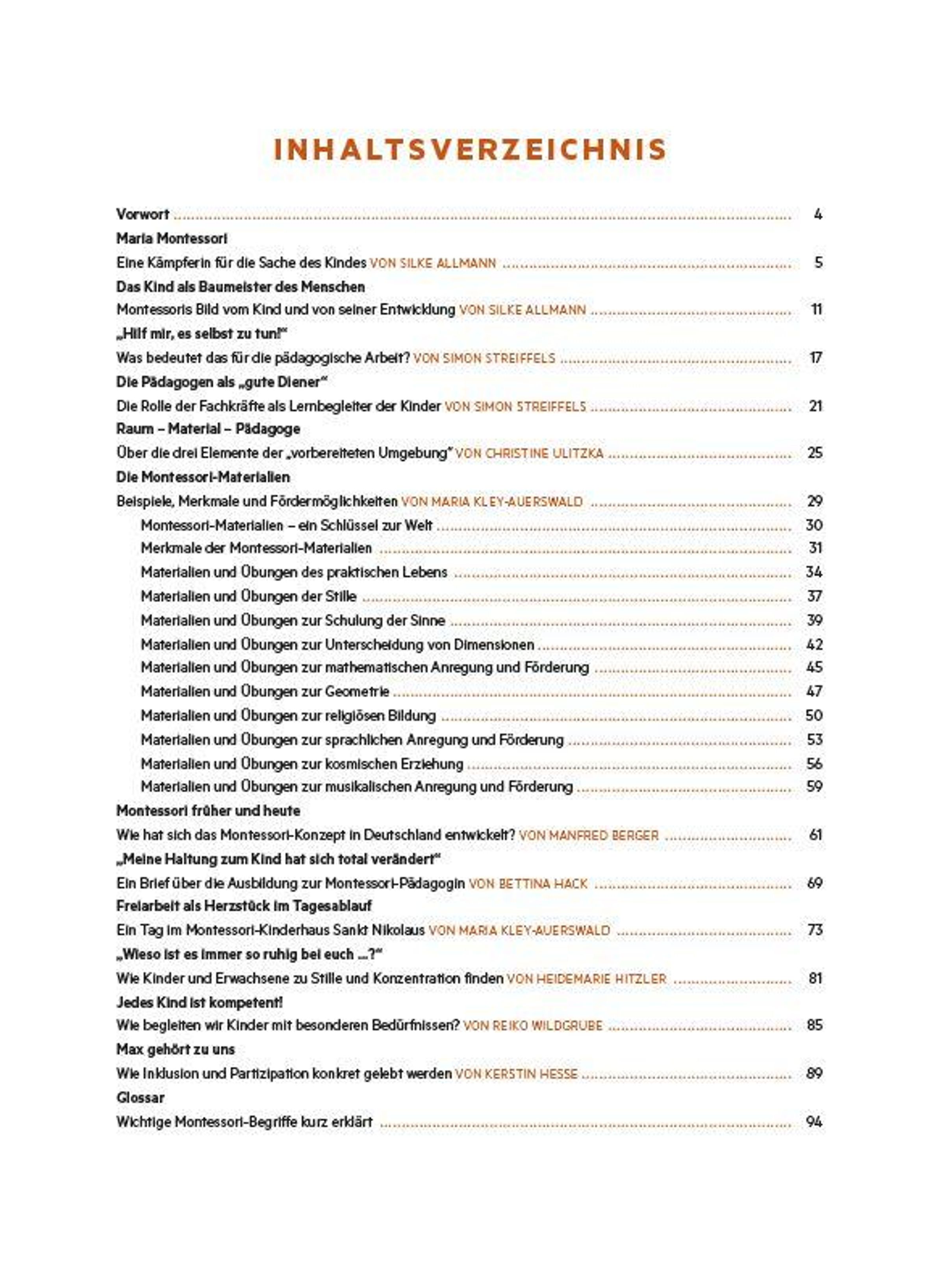 Die Erfahrungsberichte geben Anregungen, Ideen und Impulse für die eigene pädagogische Praxis im Montessori-Kinderhaus aber auch in Einrichtungen mit anderen Konzepten. Im Mittelpunkt steht immer das Kind und seine Entwicklung.