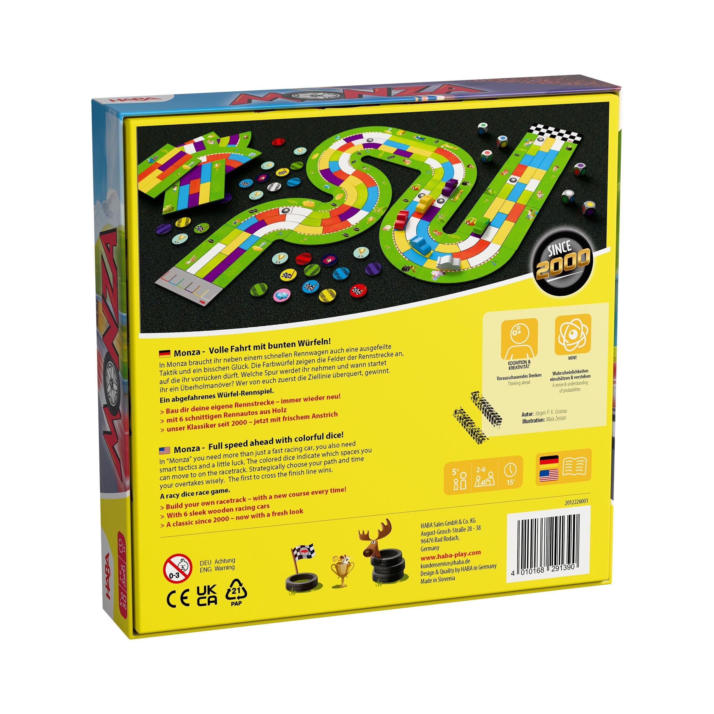 In Monza braucht man neben einem schnellen Rennwagen auch eine ausgefeilte Taktik und ein bisschen Glück. Die Farbwürfel zeigen die Felder der Rennstrecke an, auf die vorgerückt werden darf. Welche Spur wird genommen und wann wird ein Überholmanöver gestartet? Wer zuerst die Ziellinie überquert, gewinnt.