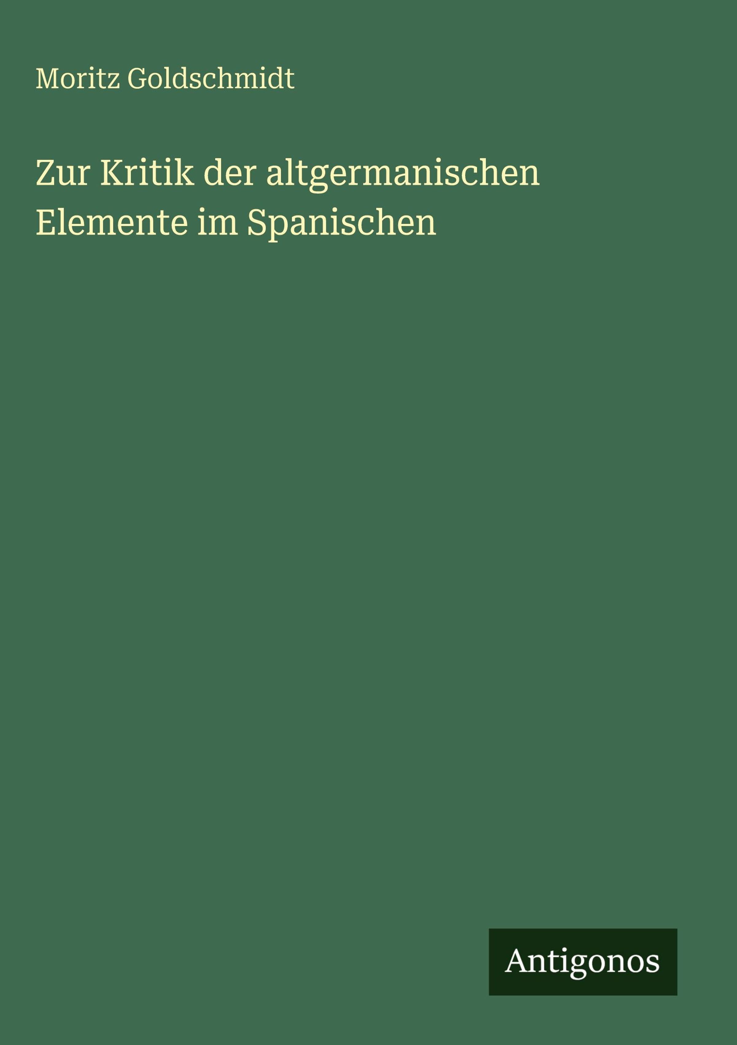 Moritz Goldschmidt: Zur Kritik der altgermanischen Elemente im Spanischen, Gebunden