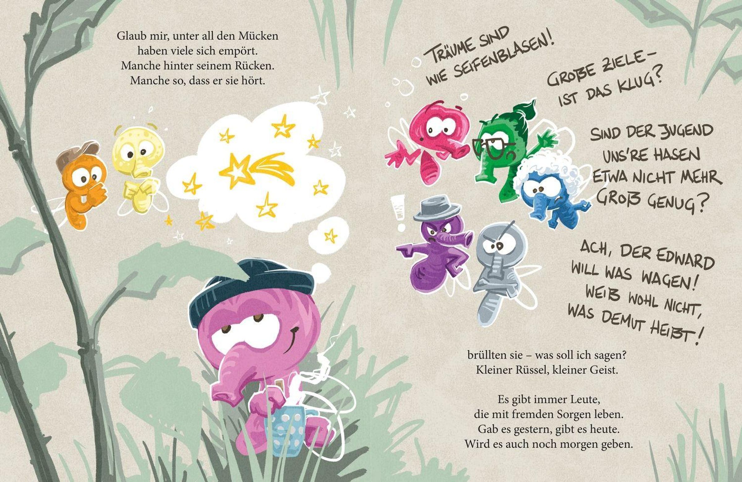 Edward von Stechowsky ist eine ungewöhnliche Mücke - denn im Gegensatz zu all seinen Artgenossen weigert er sich, zu stechen. Während ihn die anderen für verrückt erklären, träumt Edward von Größerem. Als er eines Tages eine Werbung für ein Elefantenhaus entdeckt, schmuggelt er sich kurzerhand in ein Auto - auf der Suche nach dem perfekten Ziel. Im Elefantenhaus angekommen, geht sein Traum in Erfüllung!