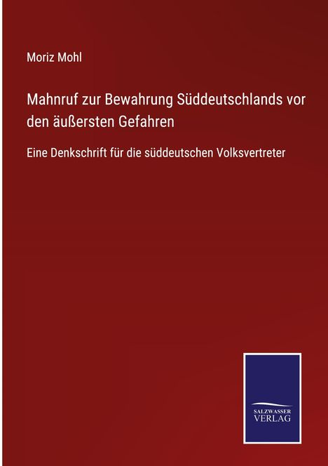 Moriz Mohl: Mahnruf zur Bewahrung Süddeutschlands vor den äußersten Gefahren, Gebunden