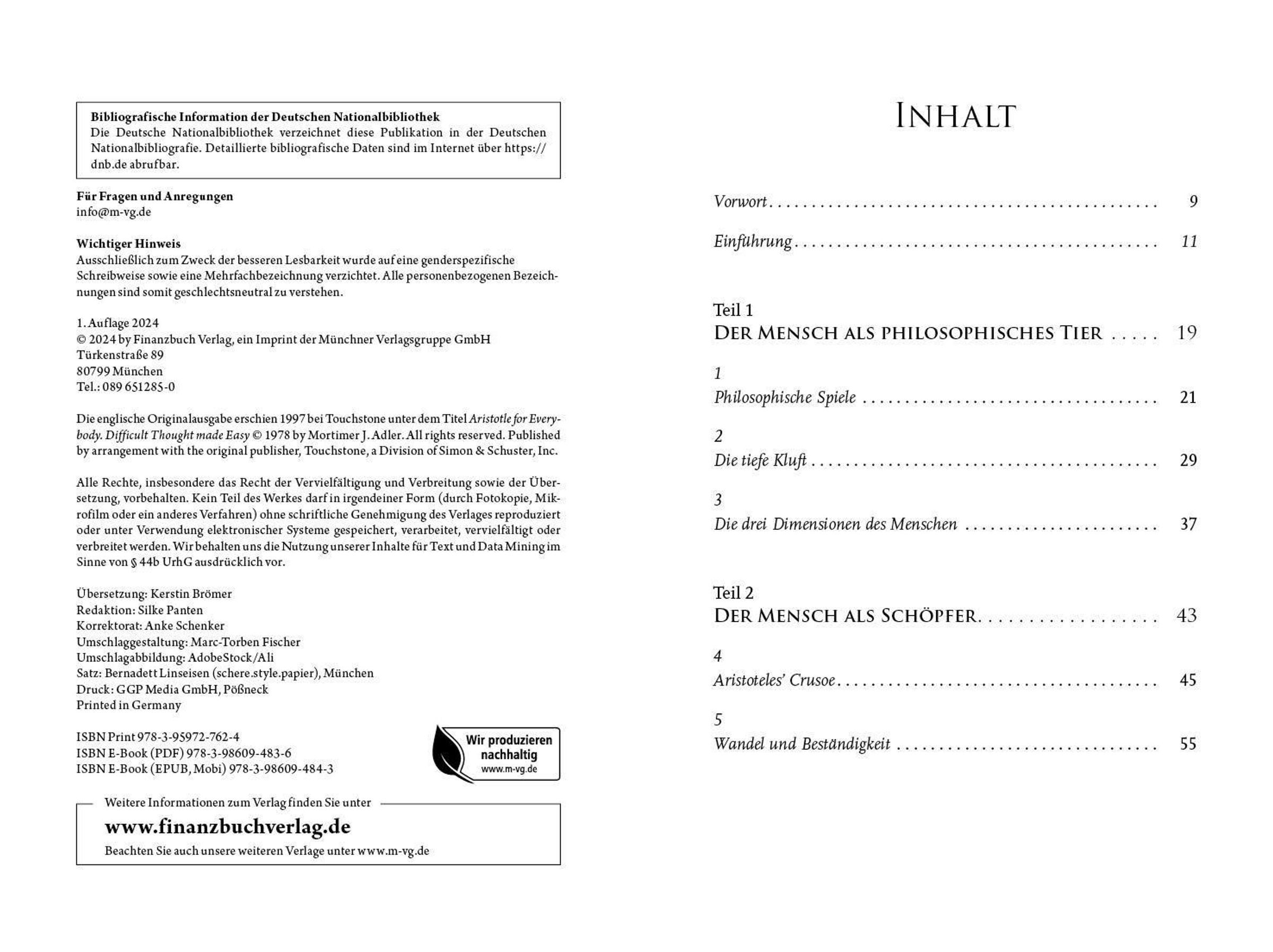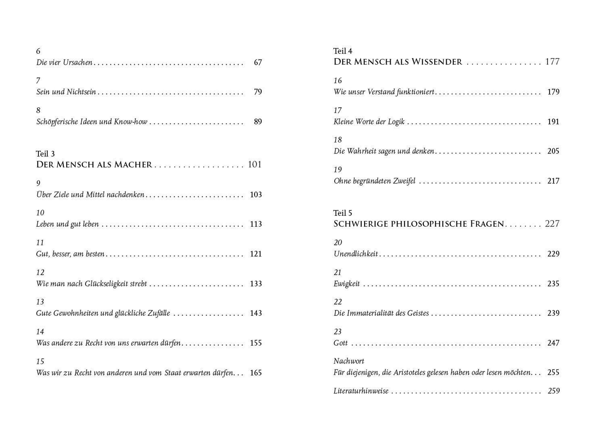 Aristoteles (384-322 v. Chr.) lehrte Alexander den Großen die Logik und durch seine philosophischen Werke jeden Philosophen seither, von Mark Aurel über Thomas von Aquin bis zu Mortimer J. Adler. Jetzt lehrt Adler - einst Vorstandsvorsitzender der renommierten Encyclopedia Britannica - die Welt die aristotelische Logik, indem er Aristoteles' Erkenntnisse in einer aktuellen, wunderbar verständlichen Weise präsentiert. Er bringt Aristoteles' Werk auf eine alltägliche, für jeden verständliche Ebene - >>to go<<, wie auf einen schnellen Kaffee mit Aristoteles. Indem er die Leser ermutigt, selbst philosophisch zu denken, bietet Adler uns einen einzigartigen Weg zu persönlichen Einsichten und zum Verständnis der grandiosen aristotelischen Philosophie, wie der Unterschied zwischen Wünschen und Bedürfnissen, der richtige Weg zum Glück und der richtige Plan für ein gutes Leben.