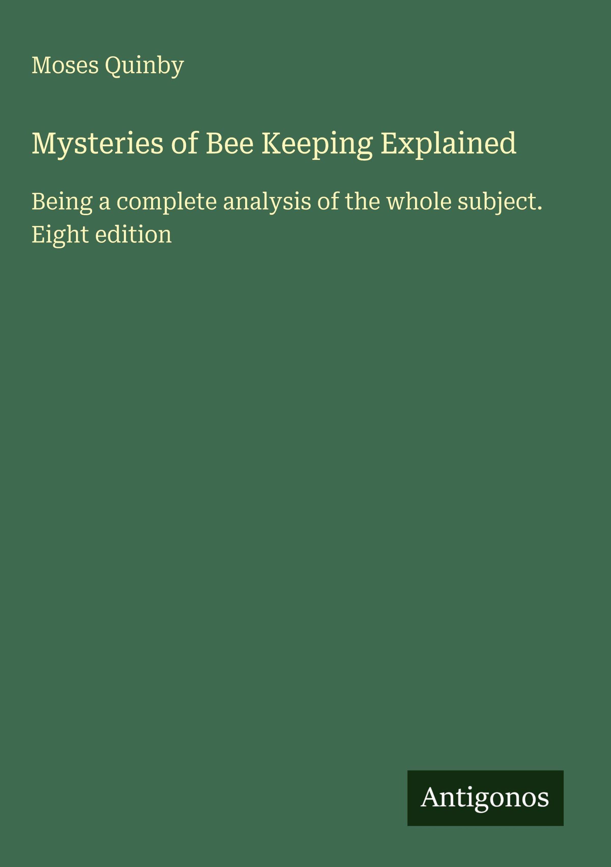 Moses Quinby: Mysteries of Bee Keeping Explained, Buch