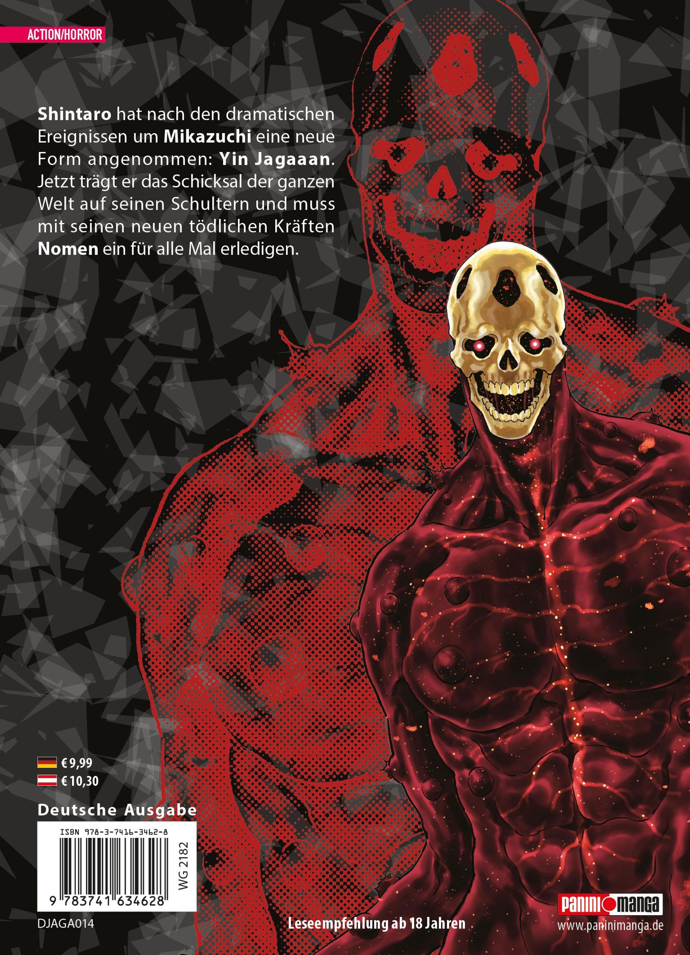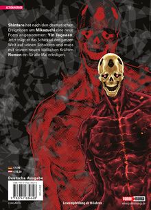 Das erwartet dich in Band 14: Shintaro hat nach den dramatischen Ereignissen um Mikazuchi eine neue Form angenommen: Yin Jagaaan. Jetzt trägt er das Schicksal der ganzen Welt auf seinen Schultern und muss mit seinen neuen tödlichen Kräften Nomen ein für alle Mal erledigen.