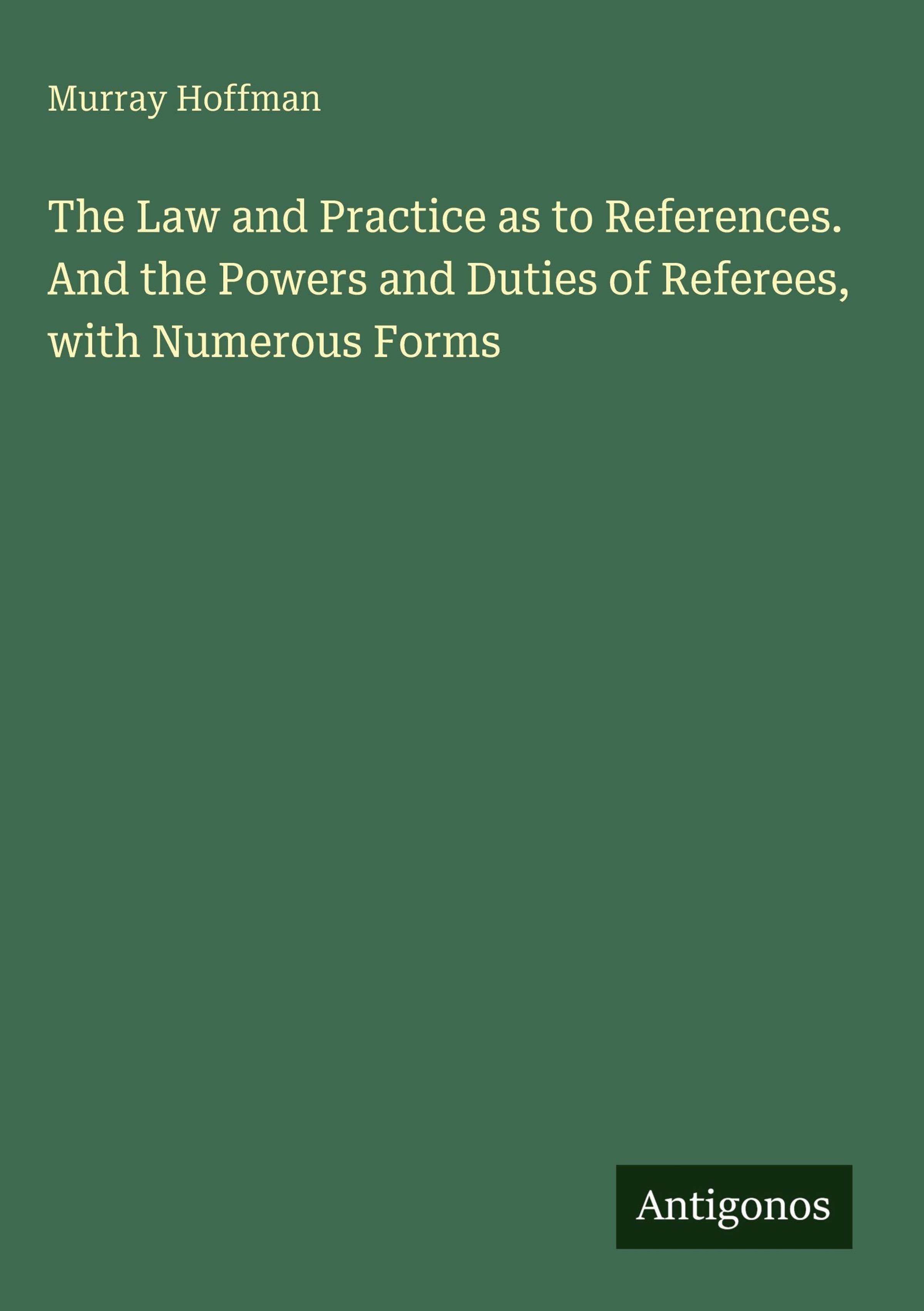 Murray Hoffman: The Law and Practice as to References. And the Powers and Duties of Referees, with Numerous Forms, Gebunden