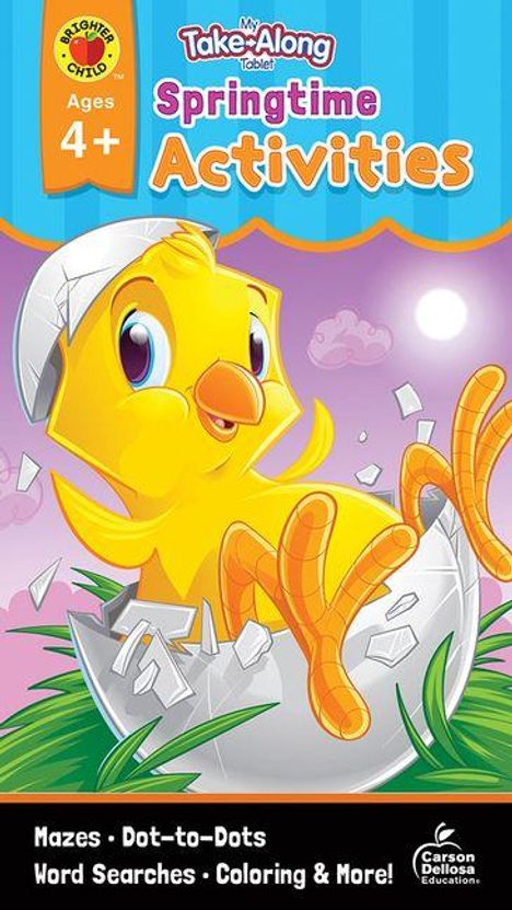 My Take-Along Tablet: Springtime Activities for kids 4+ features spring themed activities including mazes, dot-to-dots, coloring, and more. These engaging tablets are sure to keep kids entertained at home, on-the-go, and during any other adventures that spring may bring!