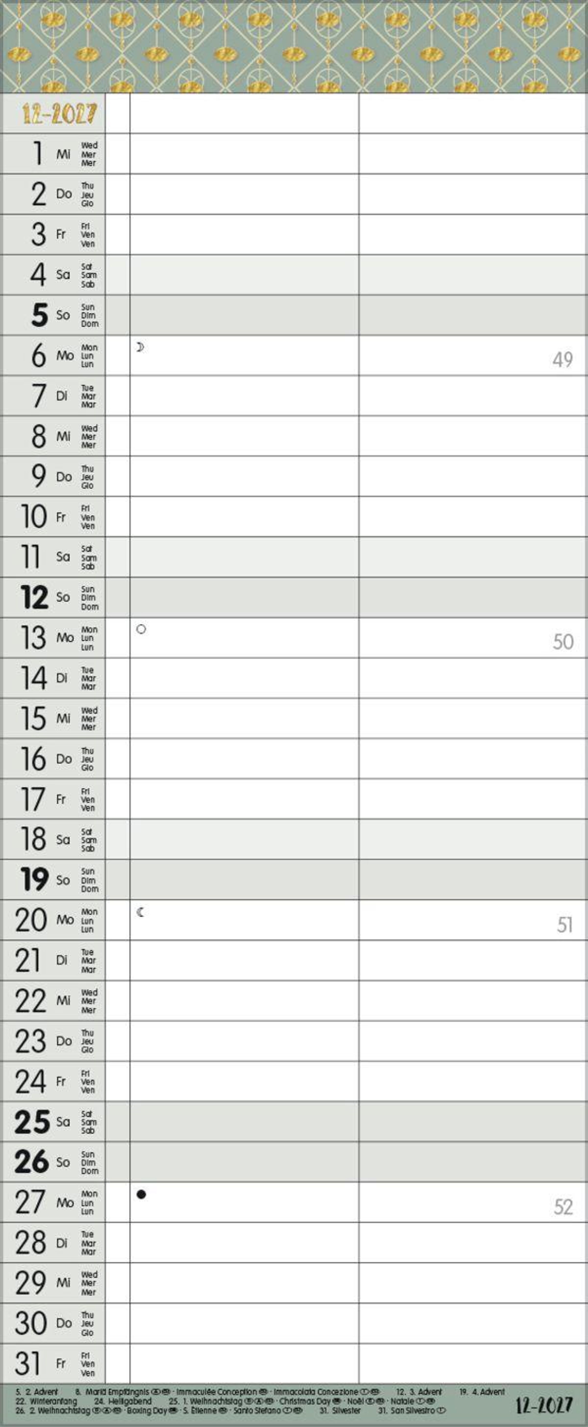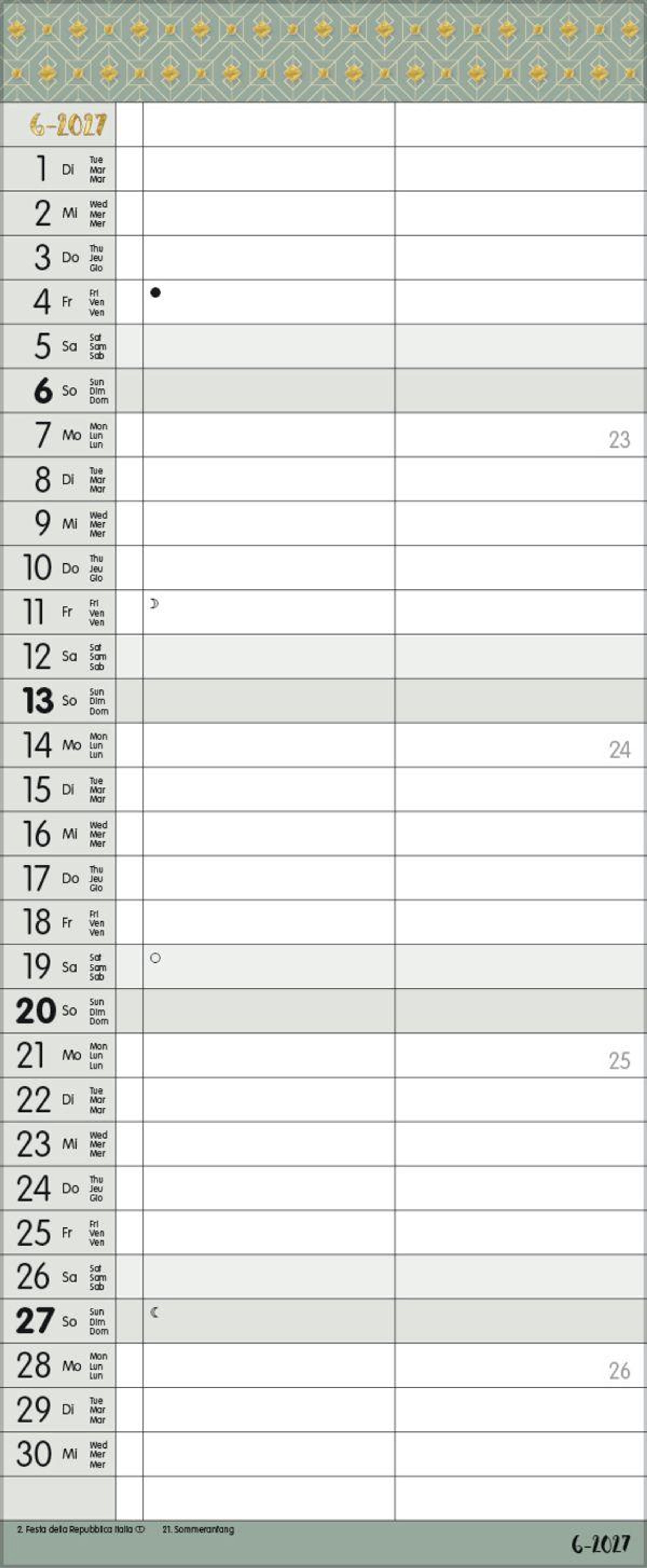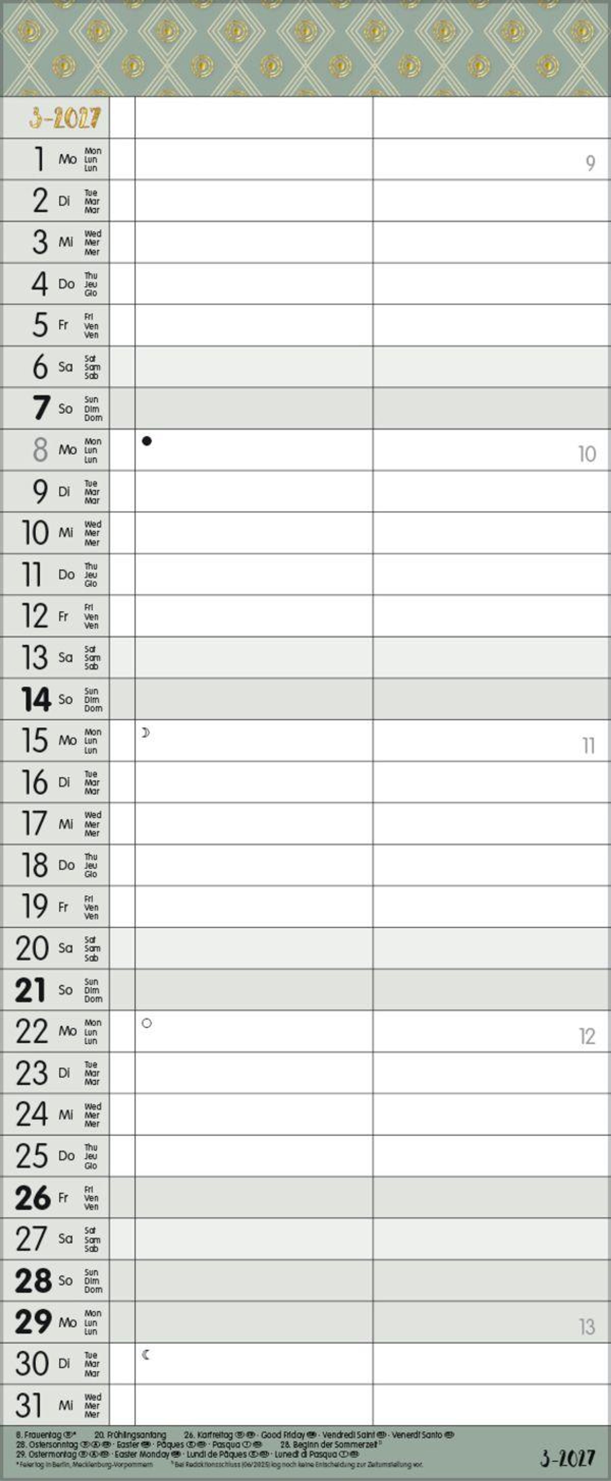 - TypoArt Familienplaner mit 2 breiten Spalten. Edler Familienkalender mit Ferienterminen und Vorschau bis März 2027.