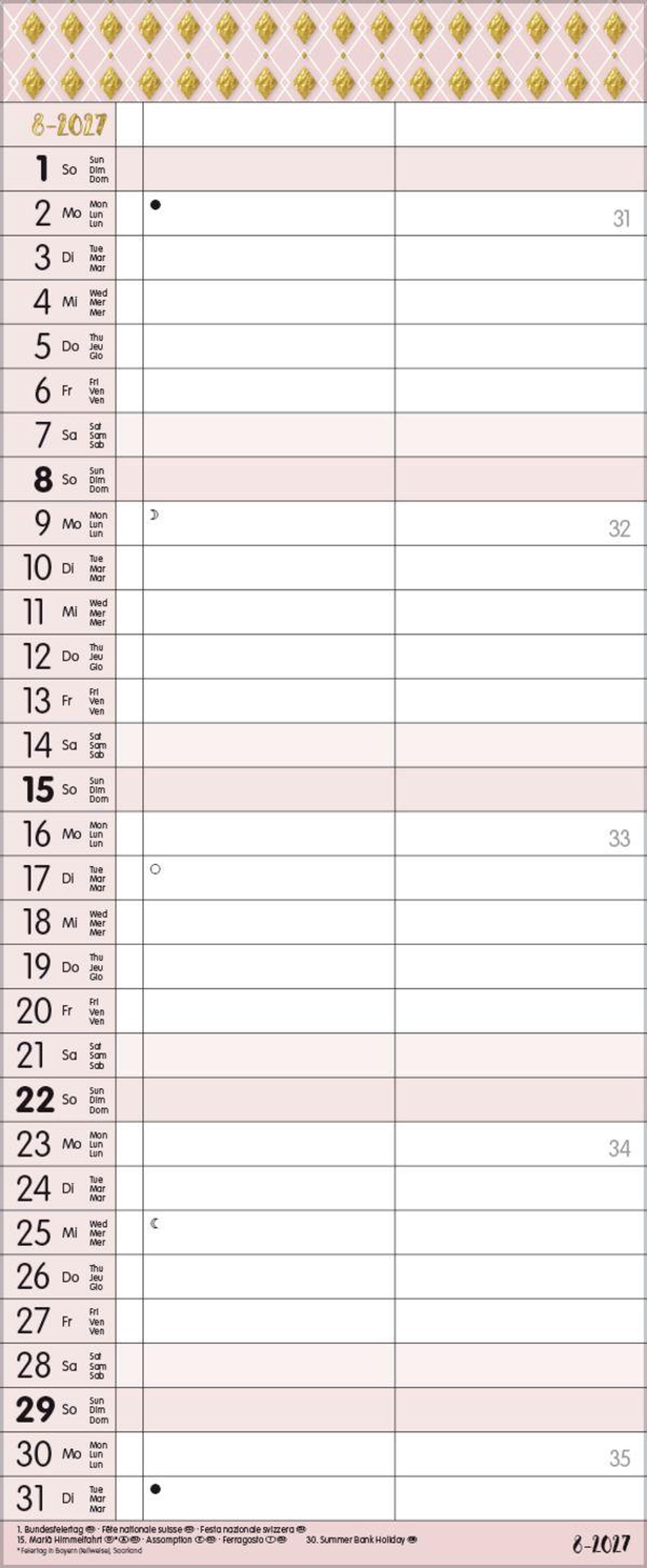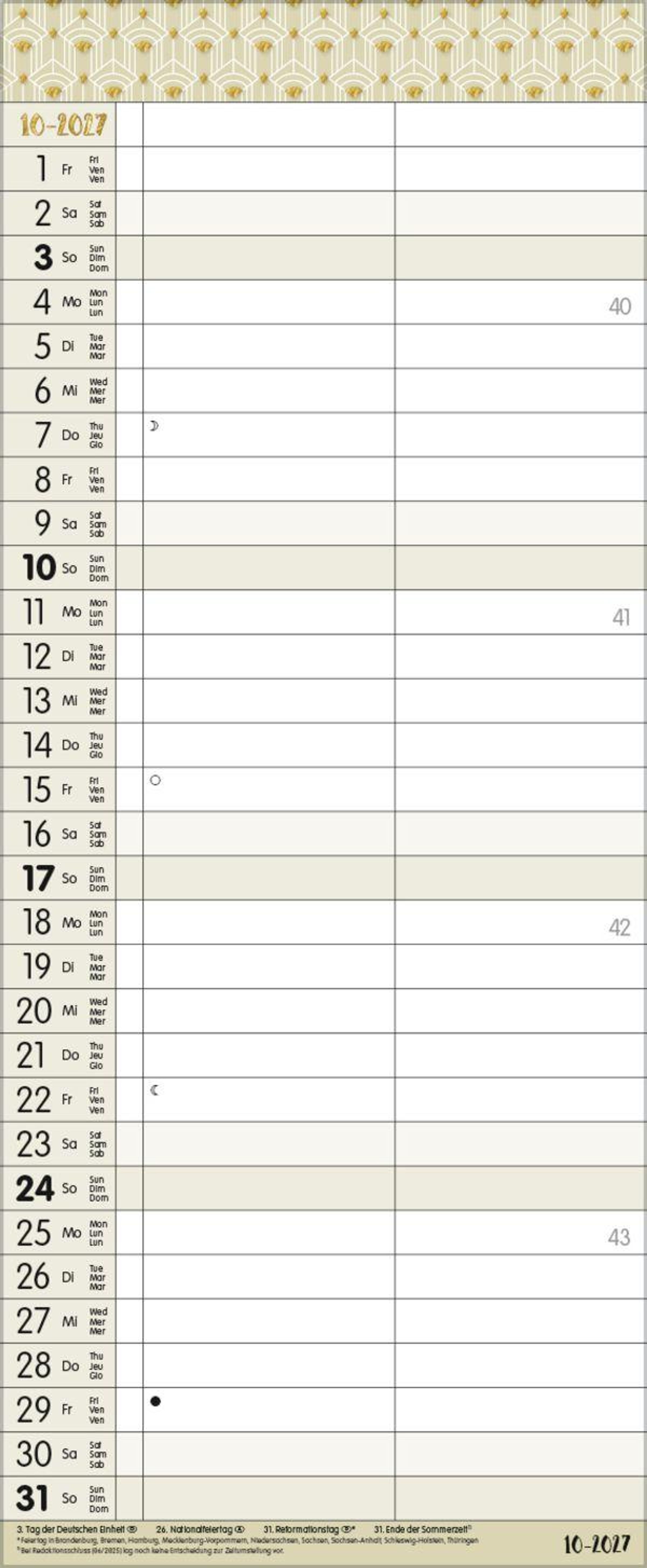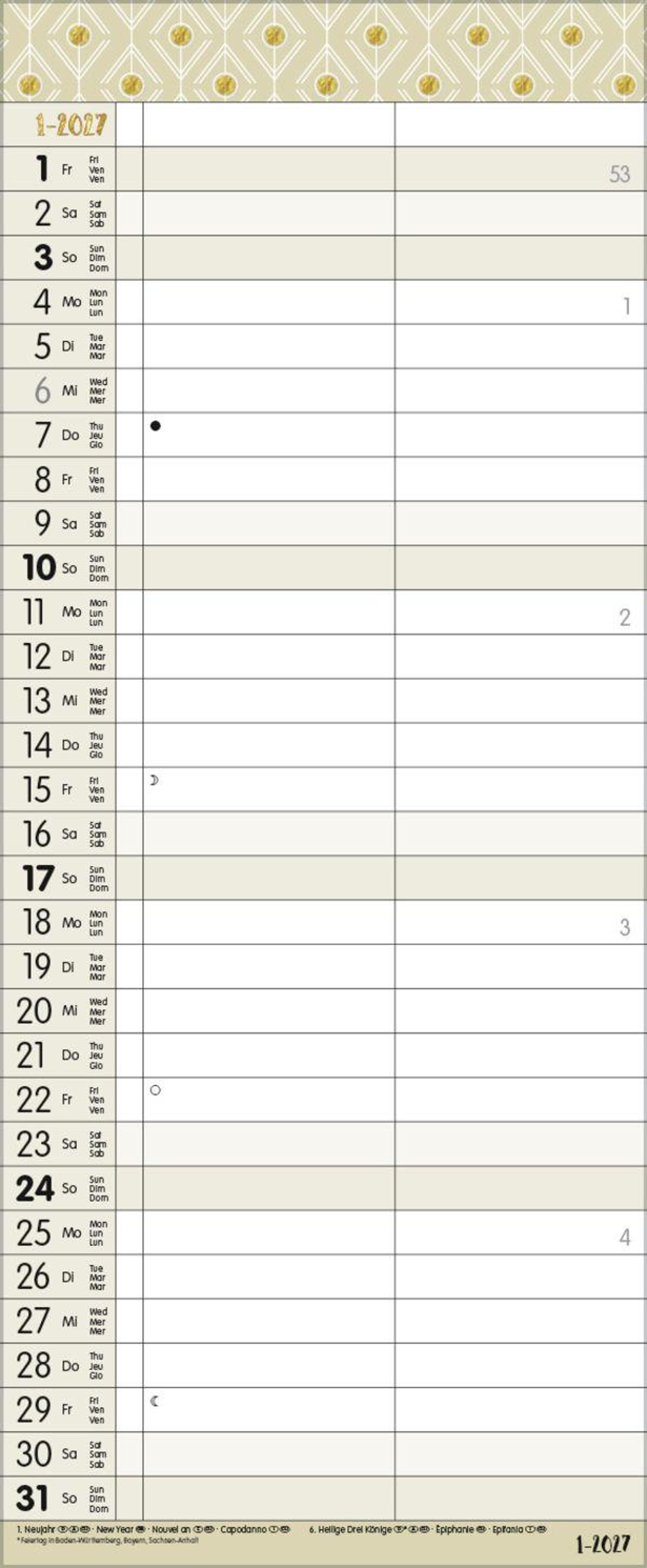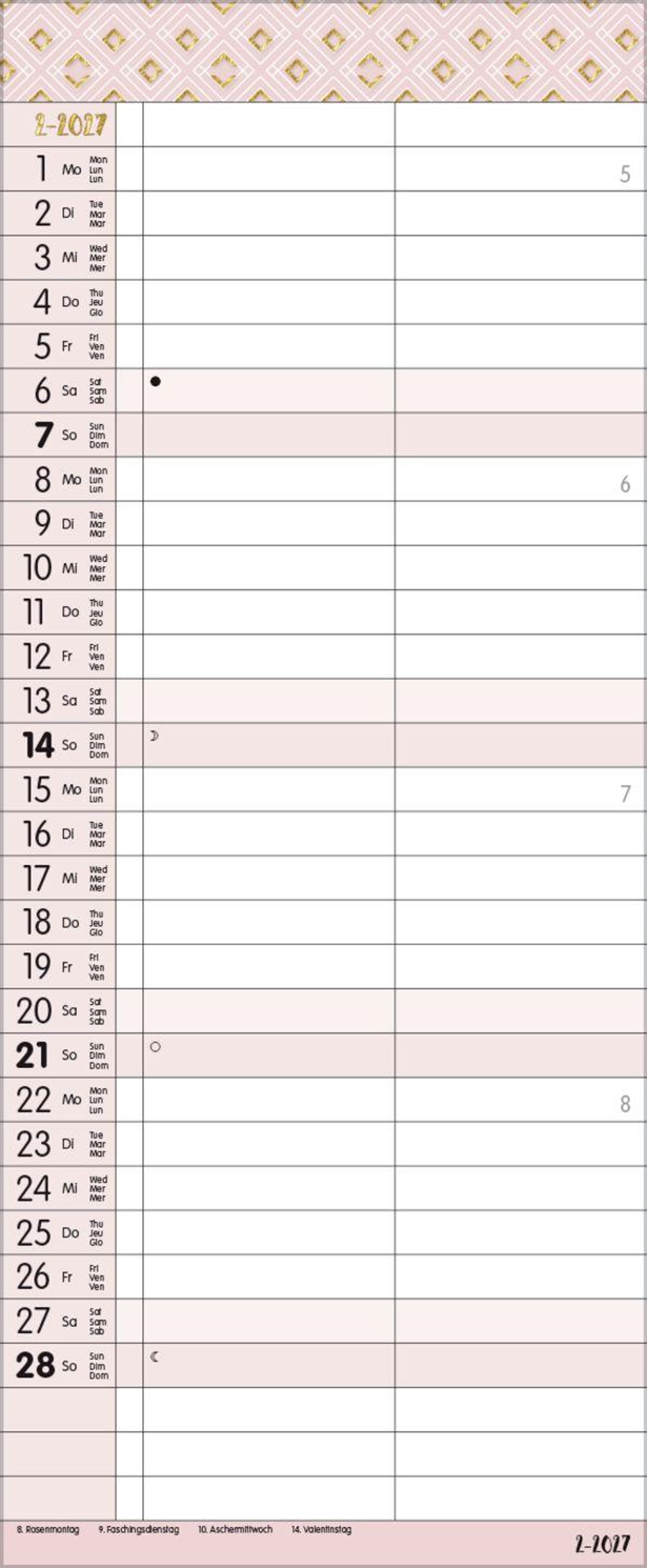 - TypoArt Familienplaner mit 2 breiten Spalten. Edler Familienkalender mit Ferienterminen und Vorschau bis März 2027.