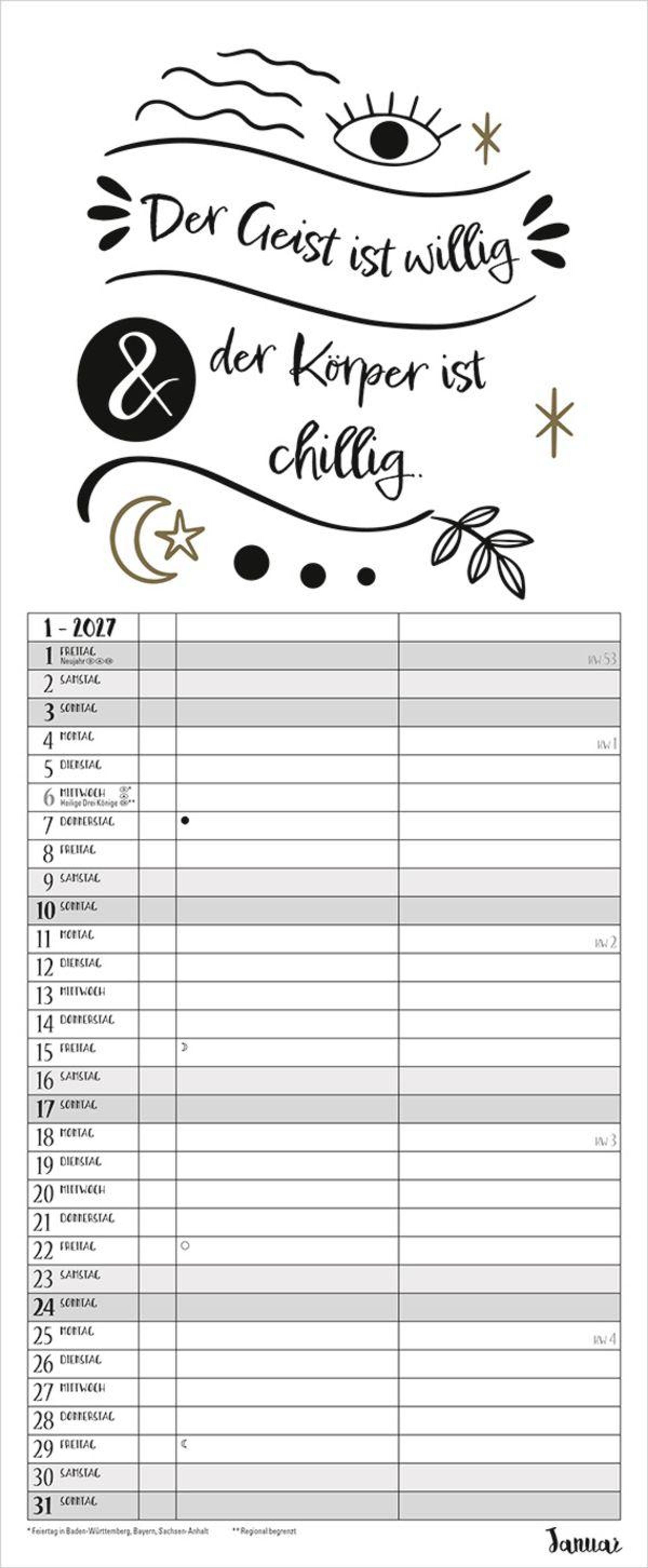 - Planer mit 2 breiten Spalten. Typo-Art Familienkalender mit Ferienterminen, Vorschau bis März 2027 und vielem mehr.