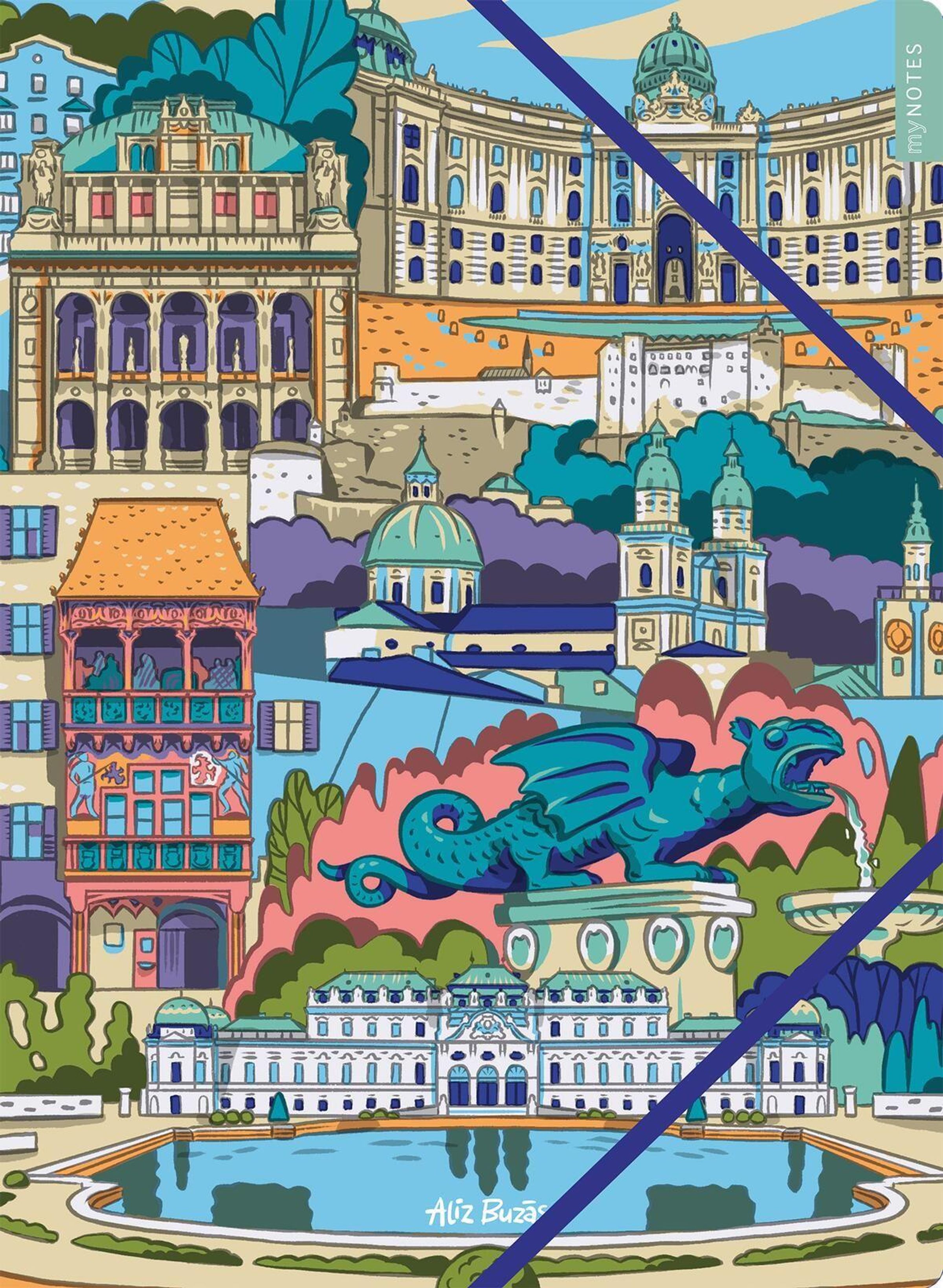 - Zauberhaft gestaltet von Aliz Buzas: Die farbenfrohe Illustration der in Wien ansässigen Künstlerin entführt dich zu einigen der schönsten architektonischen Glanzpunkte Österreichs und bringt ein unvergleichliches Flair auf deinen Schreibtisch