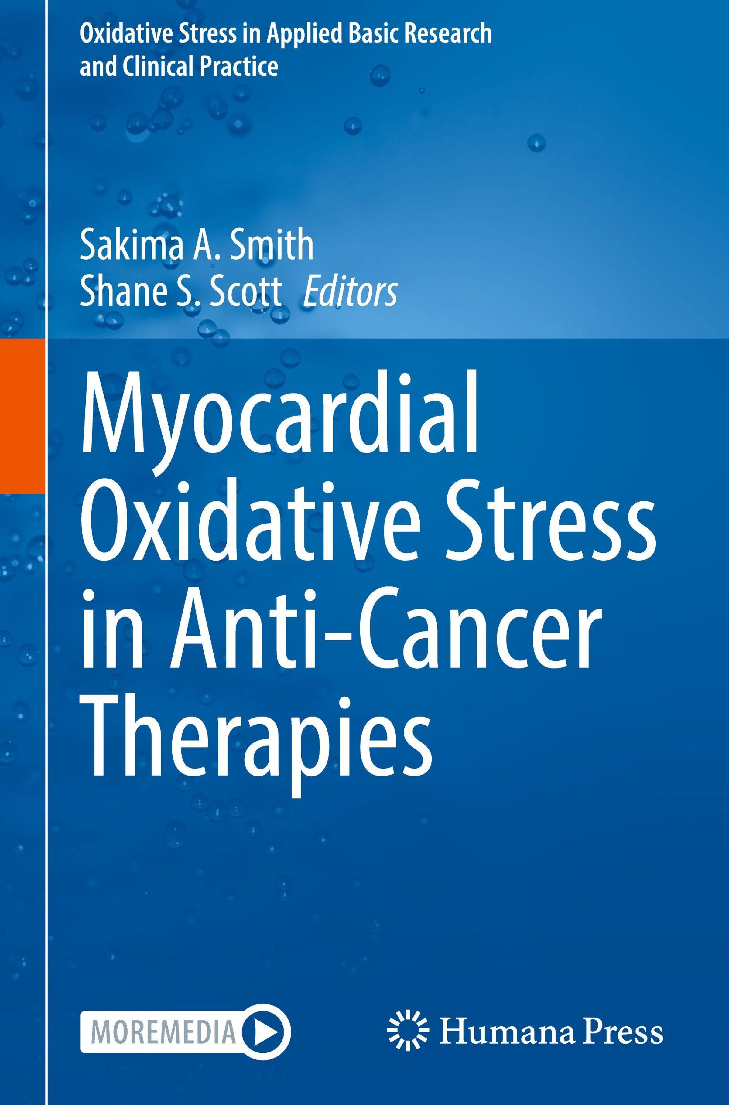 "Myocardial Oxidative Stress in Anti-Cancer Therapies" von Sakima A. Smith und Shane S. Scott. Blaues Cover mit Blasenmuster., Buch