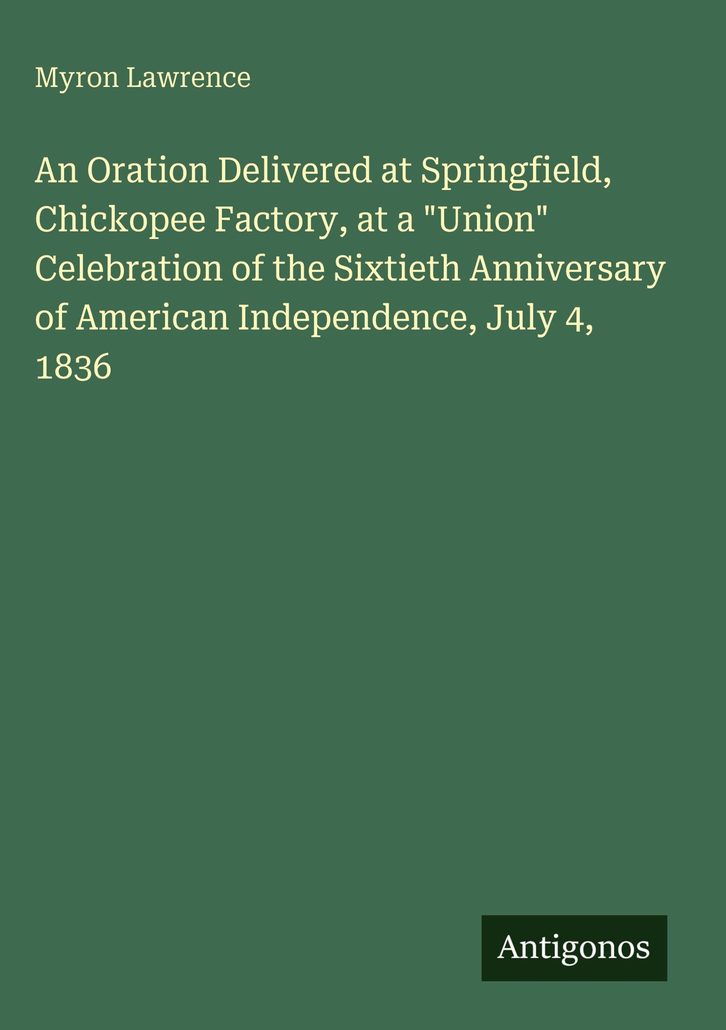 An Oration Delivered at Springfield, Chickopee Factory, at a "Union" Celebration of the Sixtieth Anniversary of American Independence, July 4, 1836