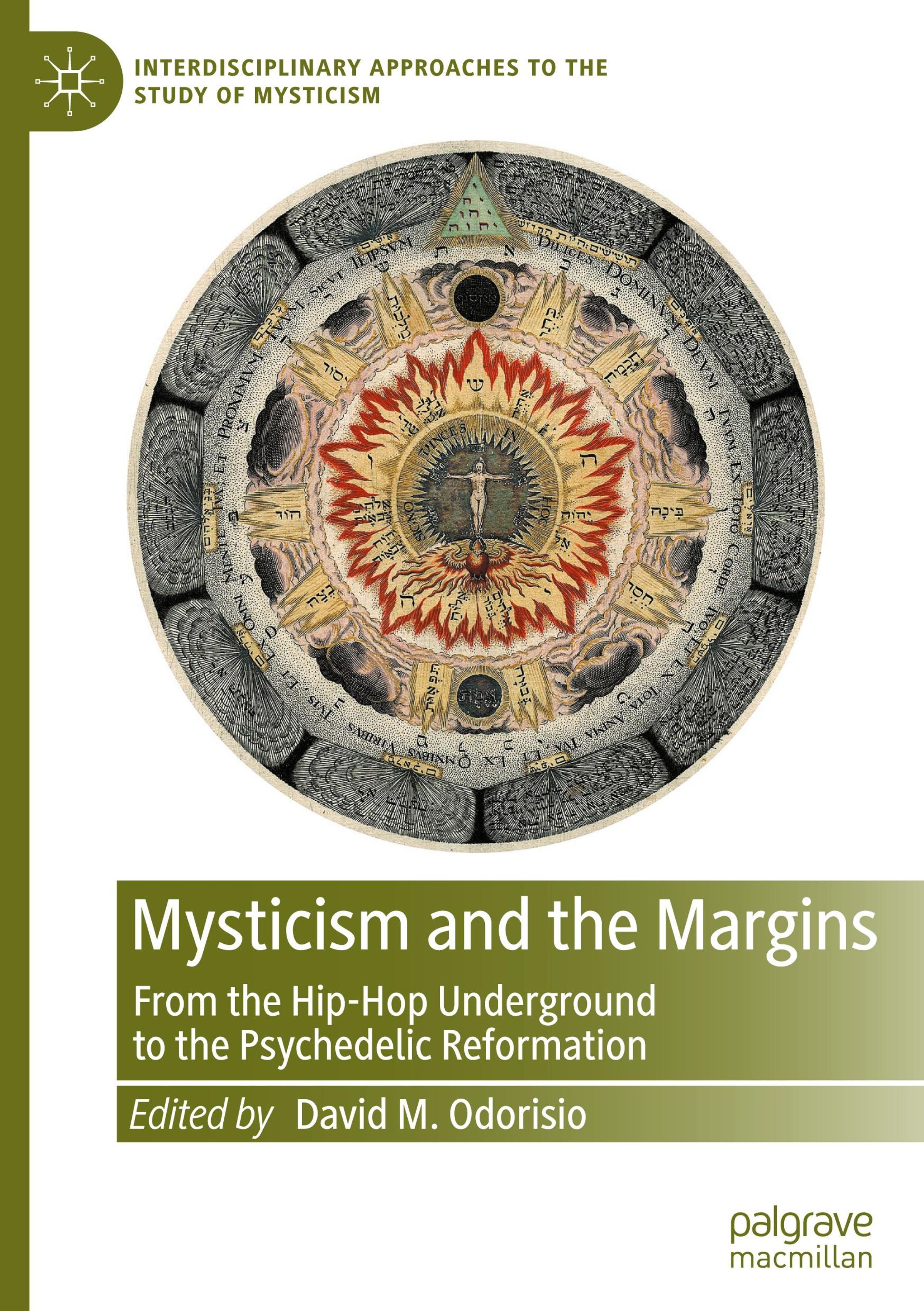 "Mysticism and the Margins" von David M. Odorisio, umrahmt von einem magischen Kreis aus Symbolen und Text., Buch