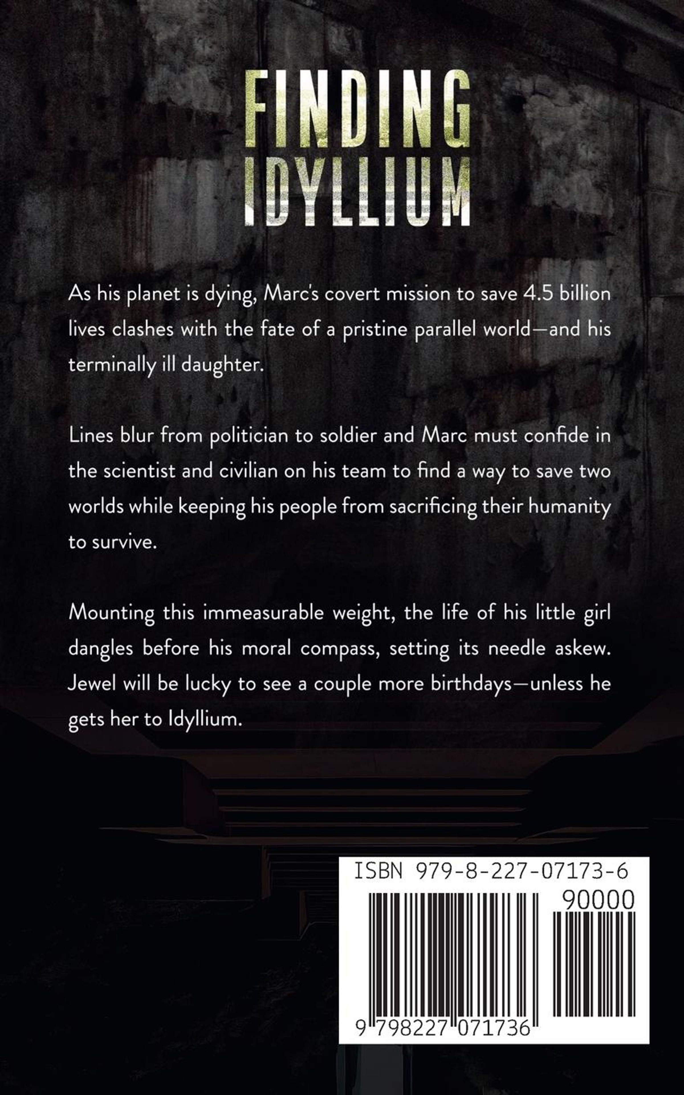 A covert mission to save Earth's billions clashes with the fate of a pristine parallel world. From politician to soldier to civilian, ethical lines blur. Loyalties are challenged. The order to assassinate Idyllium's key political leader forces Marc to take desperate turns, dividing members of his team.