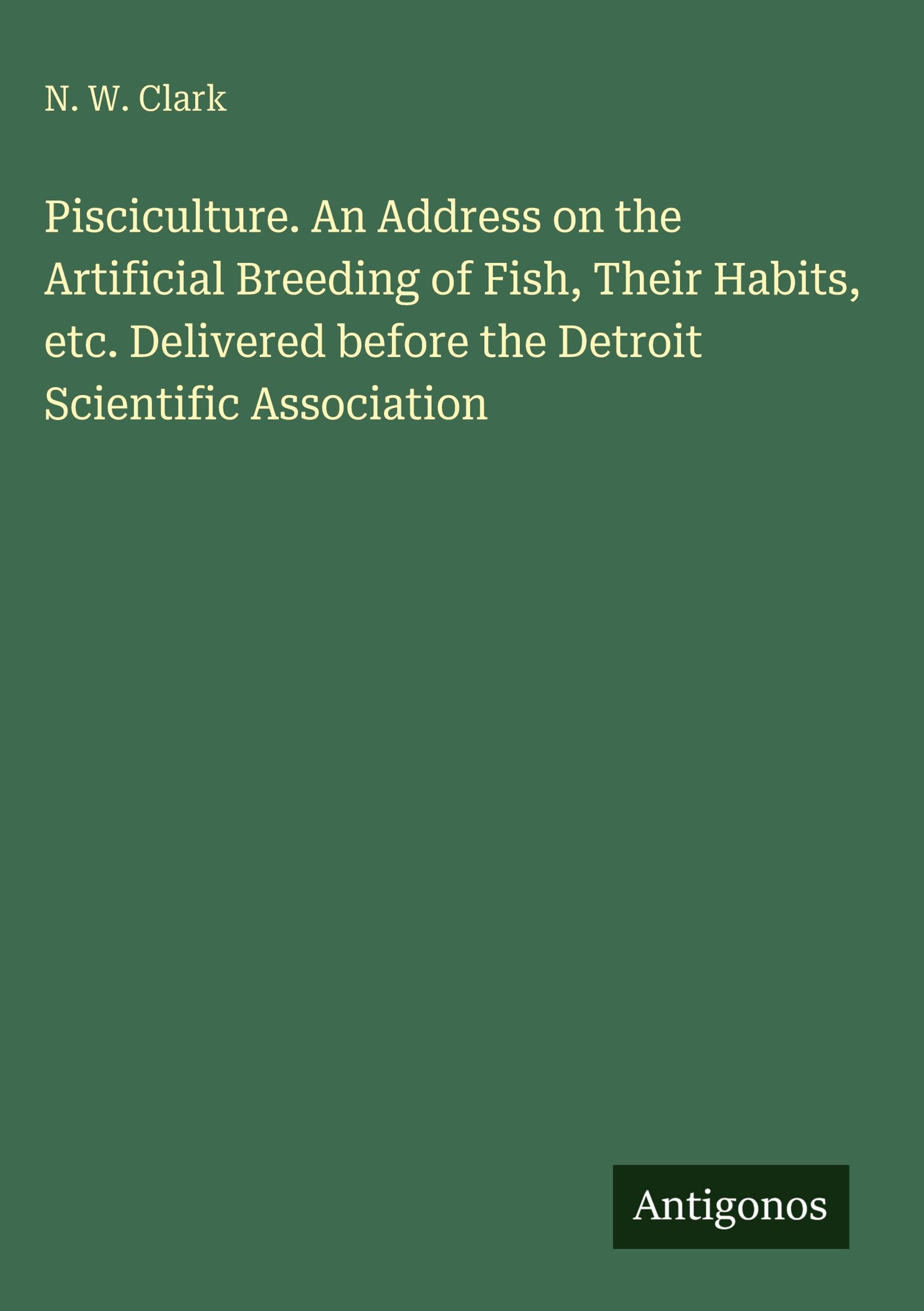 N. W. Clark: Pisciculture. An Address on the Artificial Breeding of Fish, Their Habits, etc. Delivered before..., Gebunden