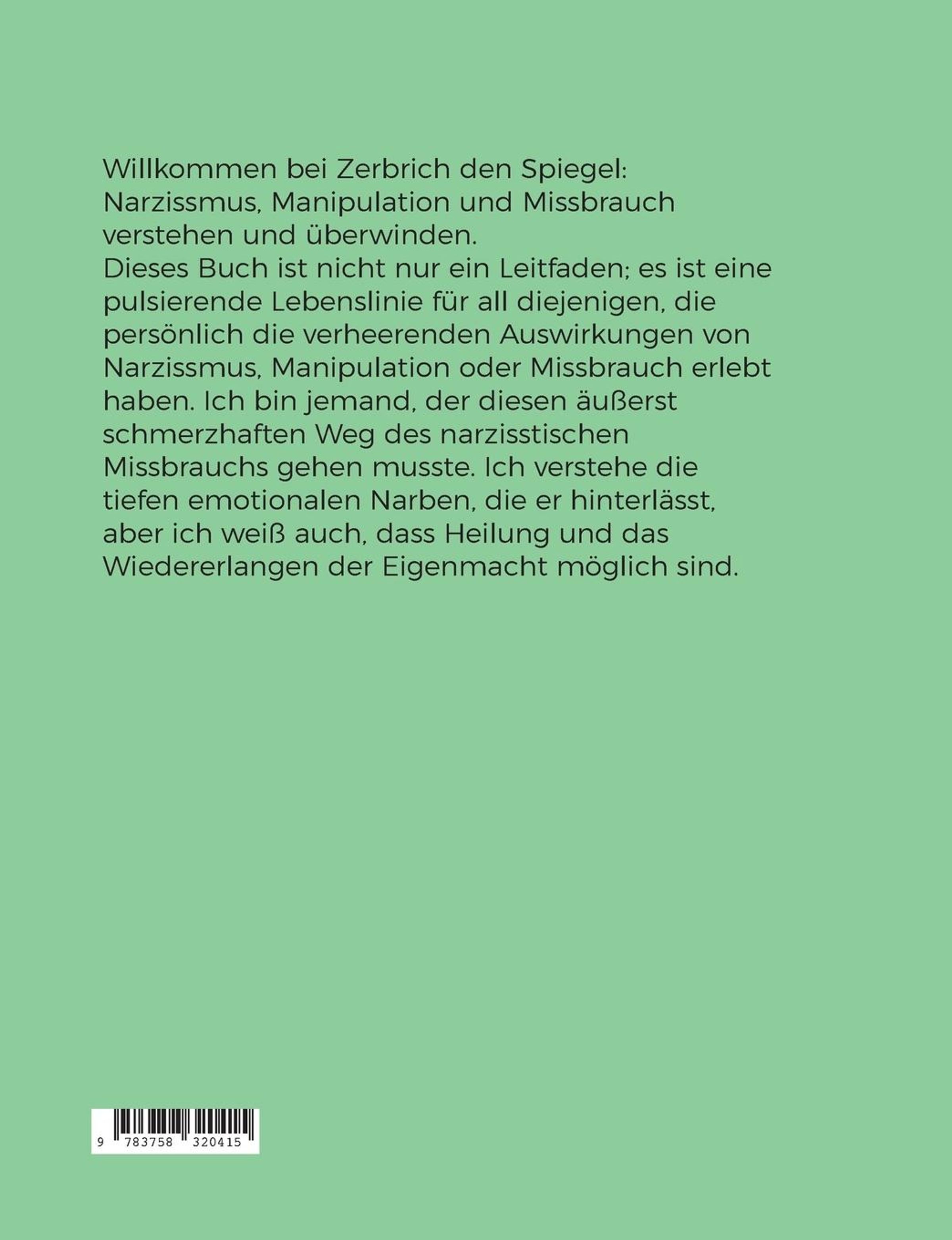 Willkommen bei Zerbrich den Spiegel: Narzissmus, Manipulation und Missbrauch verstehen und überwinden. Dieses Buch ist nicht nur ein Leitfaden; es ist eine pulsierende Lebenslinie für all diejenigen, die persönlich die verheerenden Auswirkungen von Narzissmus, Manipulation oder Missbrauch erlebt haben. Ich bin jemand, der diesen äußerst schmerzhaften Weg des narzisstischen Missbrauchs gehen musste. Ich verstehe die tiefen emotionalen Narben, die er hinterlässt, aber ich weiß auch, dass Heilung und das Wiedererlangen der Eigenmacht möglich sind.