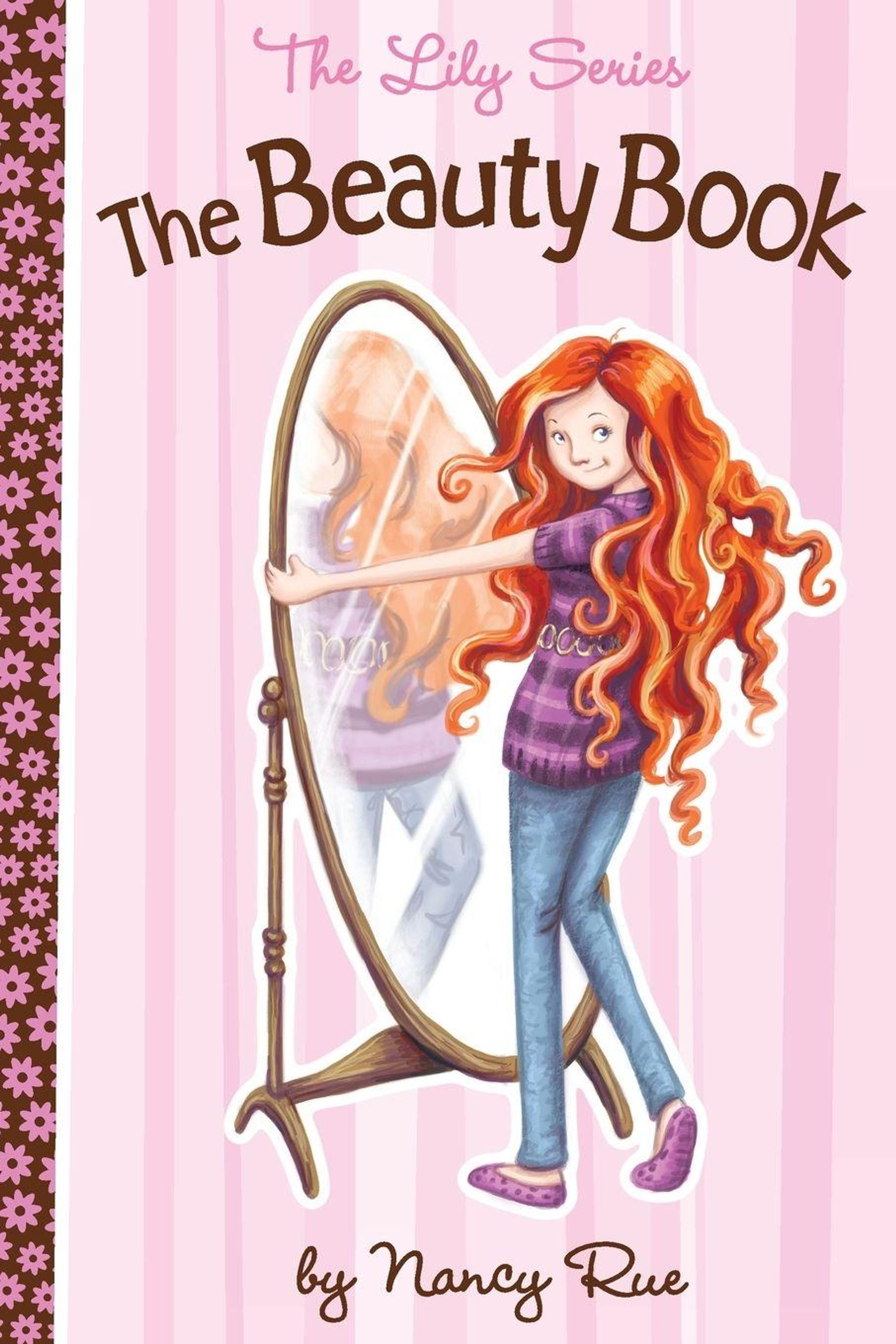 „The Lily Series: The Beauty Book by Nancy Rue“. Illustration: Mädchen mit roten Haaren vor einem Spiegel, rosa Hintergrund., Buch