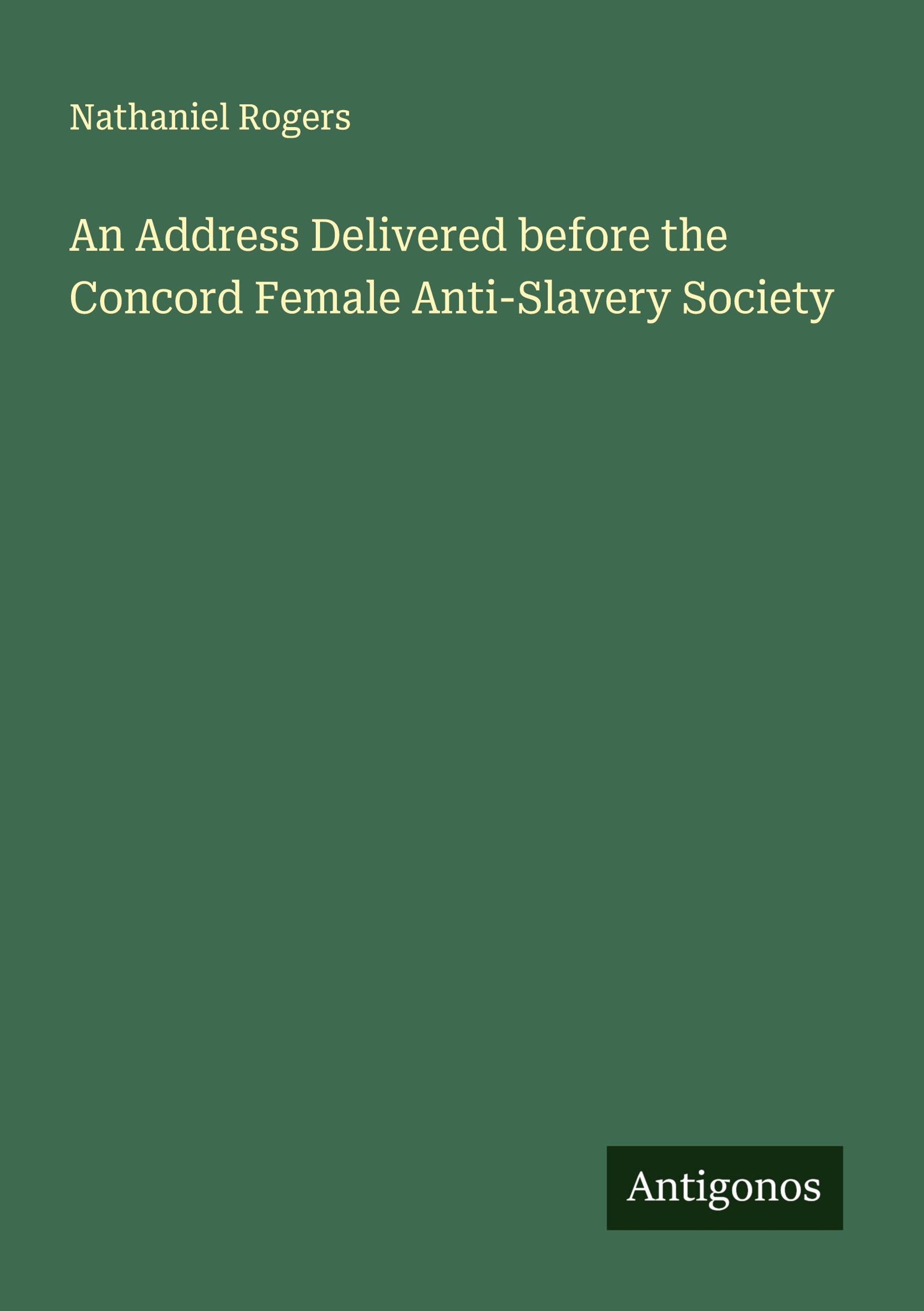 An Address Delivered before the Concord Female Anti-Slavery Society