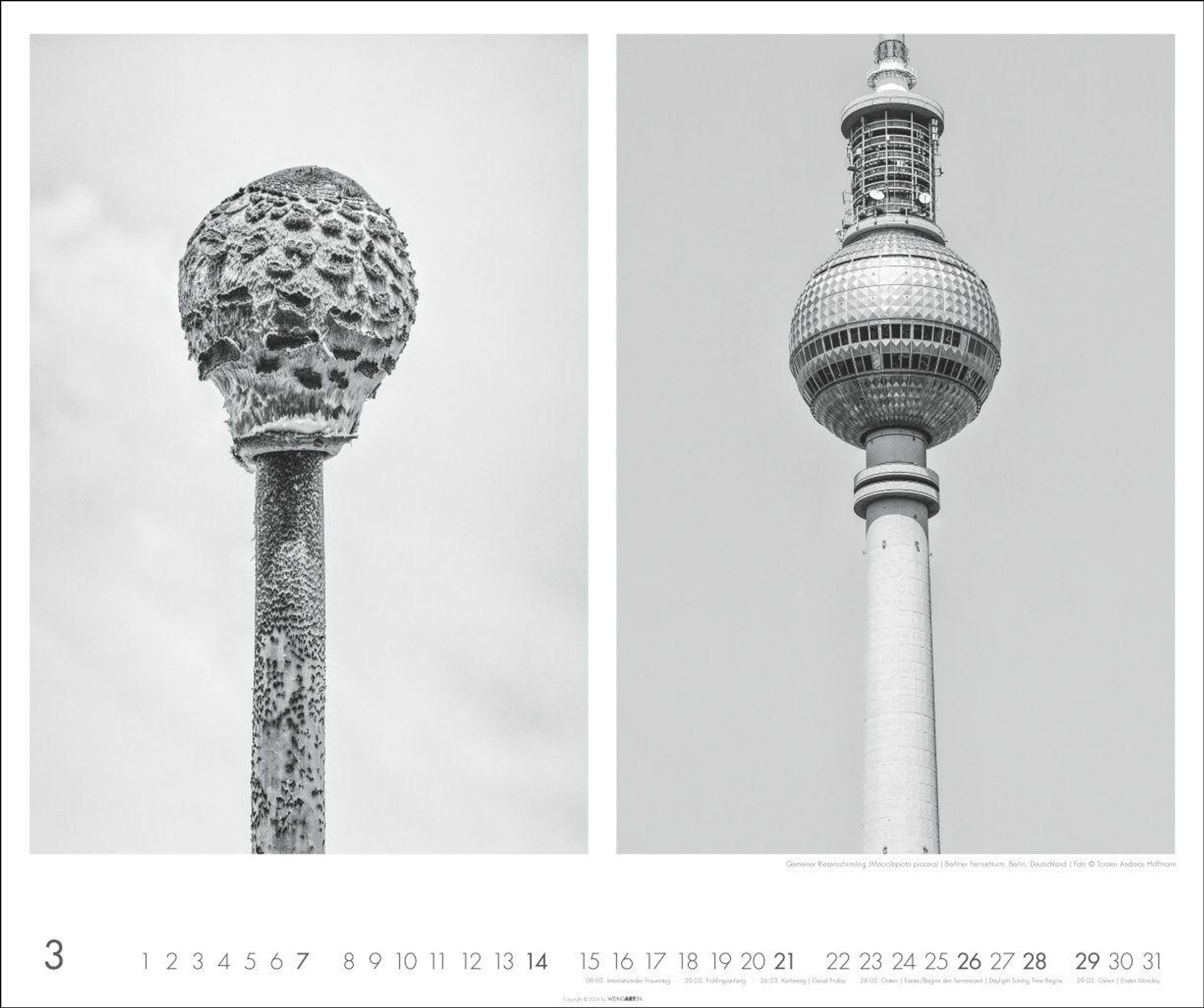 Ein Fotokalender zum Staunen: Im direkten Vergleich wird deutlich, an welchen natürlichen Formen Architekten für ihre Bauten Maß genommen haben