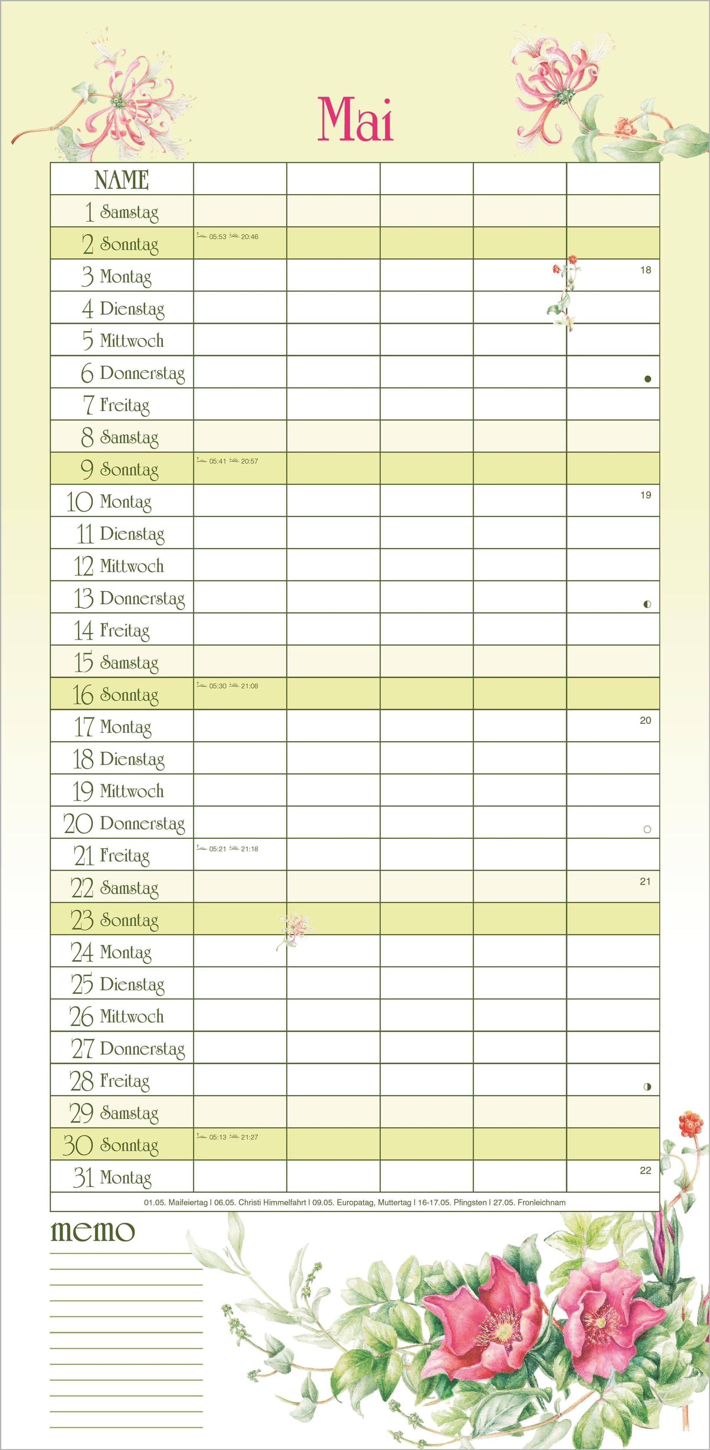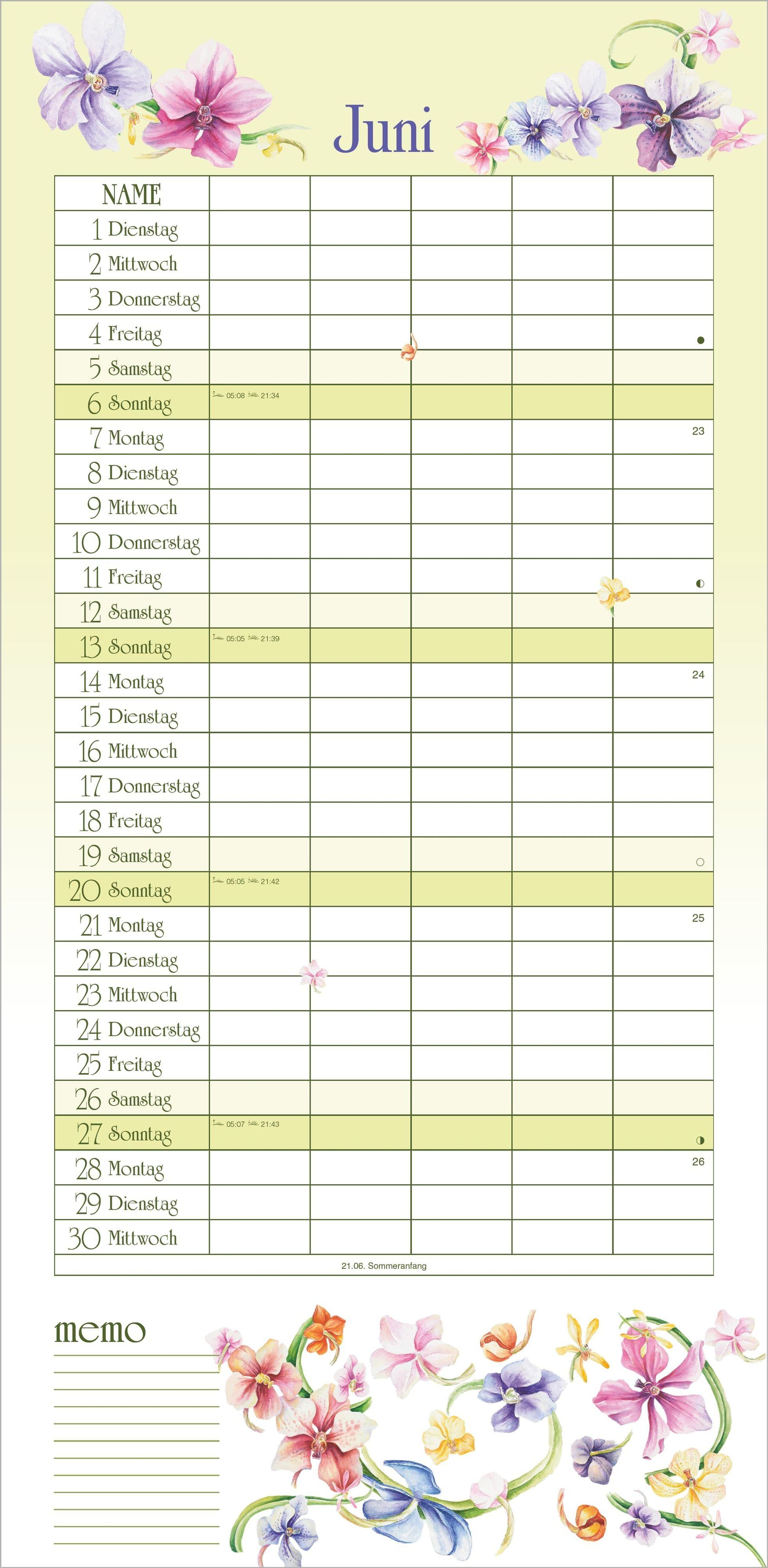Wand-Familienkalender mit 5 Spalten im Naturzauber-Design von Janneke Brinkman | Format 22 x 45 cm