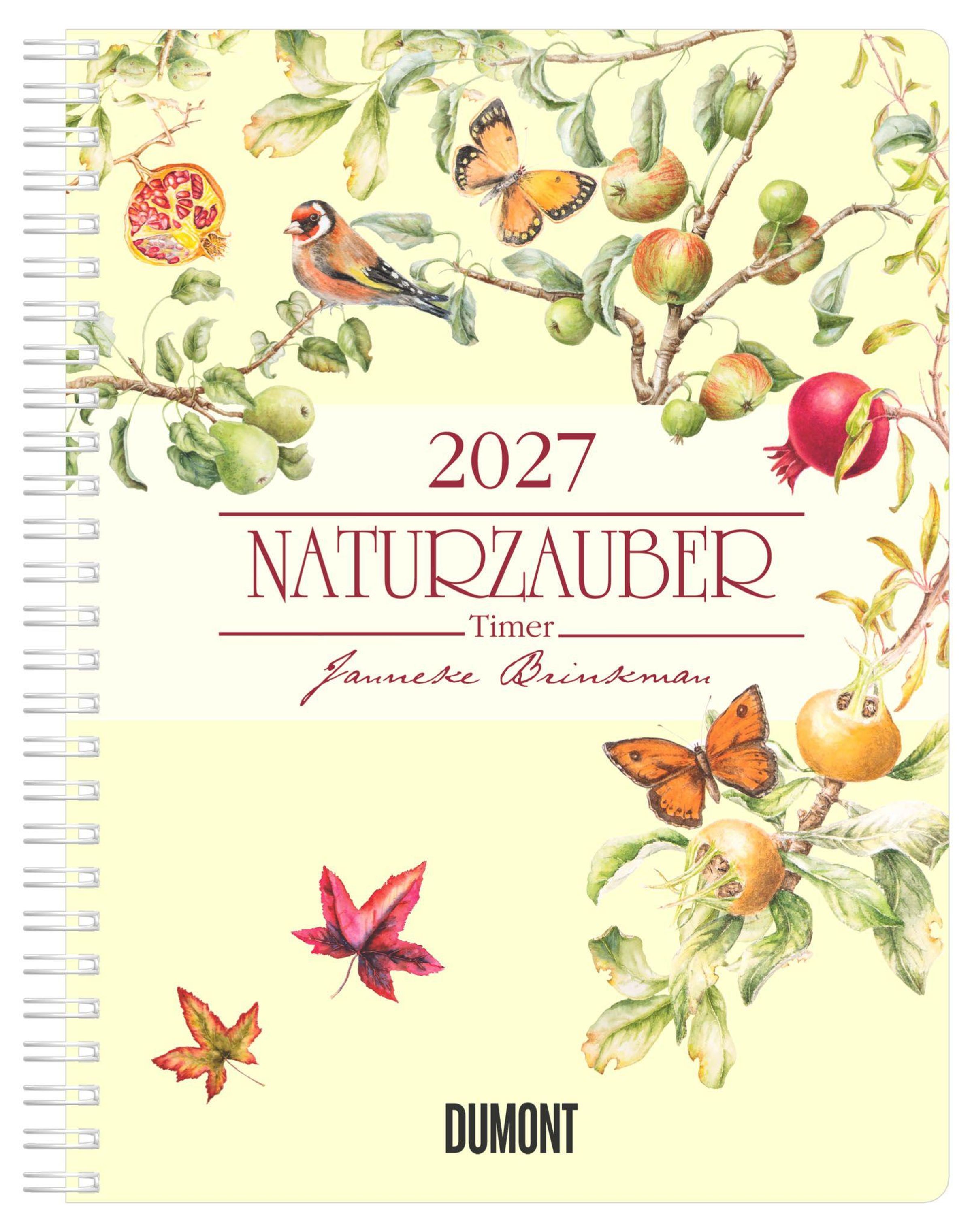 Mit dem Naturzauber Timer 2027 von DUMONT begleitet dich die detailreiche Naturwelt von Janneke Brinkman durch das Jahr -- Woche für Woche mit floralen Illustrationen, die mit viel Liebe zum Detail gestaltet sind. Der Buchkalender ist ideal zum Planen im Alltag und überzeugt durch seine hochwertige Spiralbindung, so dass er bequem aufgeschlagen liegen bleibt. Besonders praktisch: 132 Seiten mit zusätzlichem Raum für eigene Gedanken -- dank extra Notizseiten.