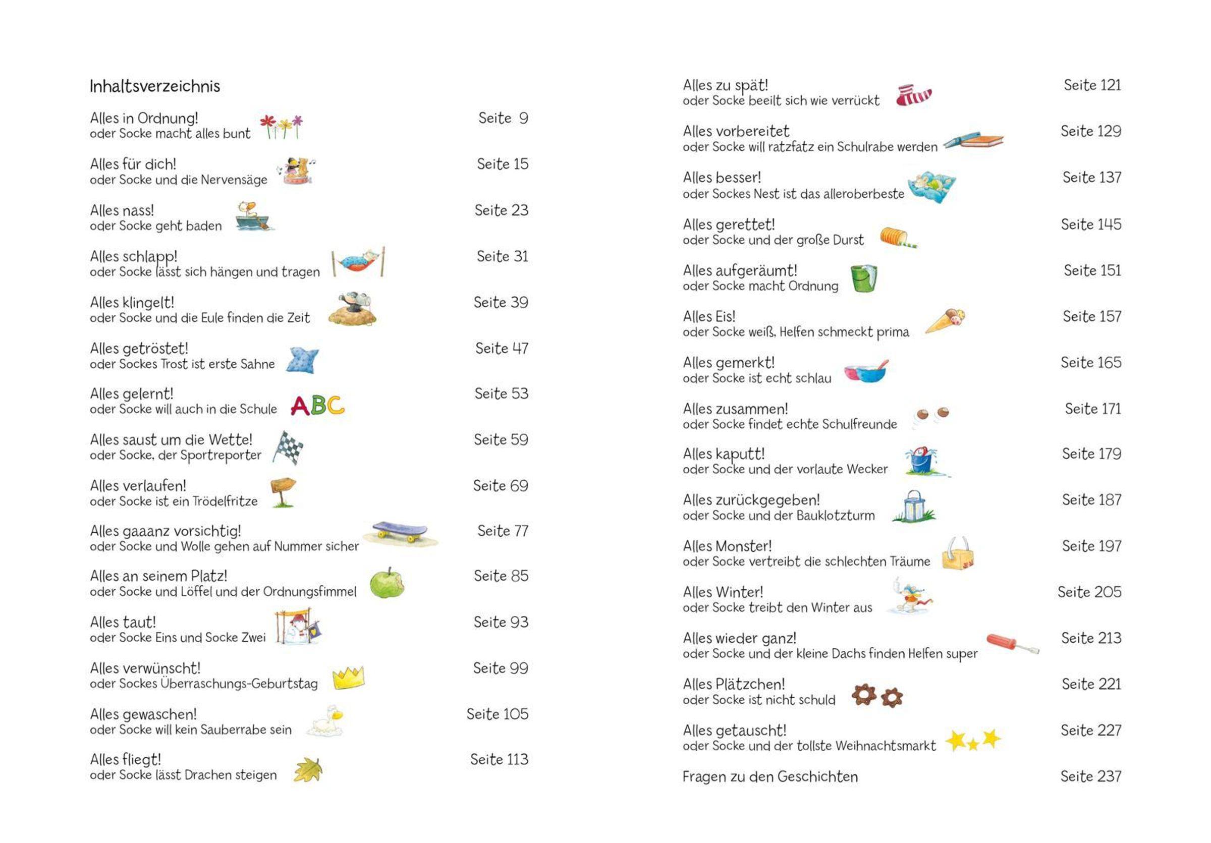 So viel kleiner Rabe Socke gab's noch nie in einem Buch! Hier erleben Kinder die beliebtesten Abenteuer von Socke und seinen Freunden - mal lustig, mal nachdenklich, mal frech, immer voller Herz. Die Geschichten greifen Themen auf, die Kindergartenkinder bewegen: Angsthaben und Mutigsein, Streiten und Versöhnen, Trödeln, Teilen, Geheimnisse und das große Abenteuer Freundschaft.