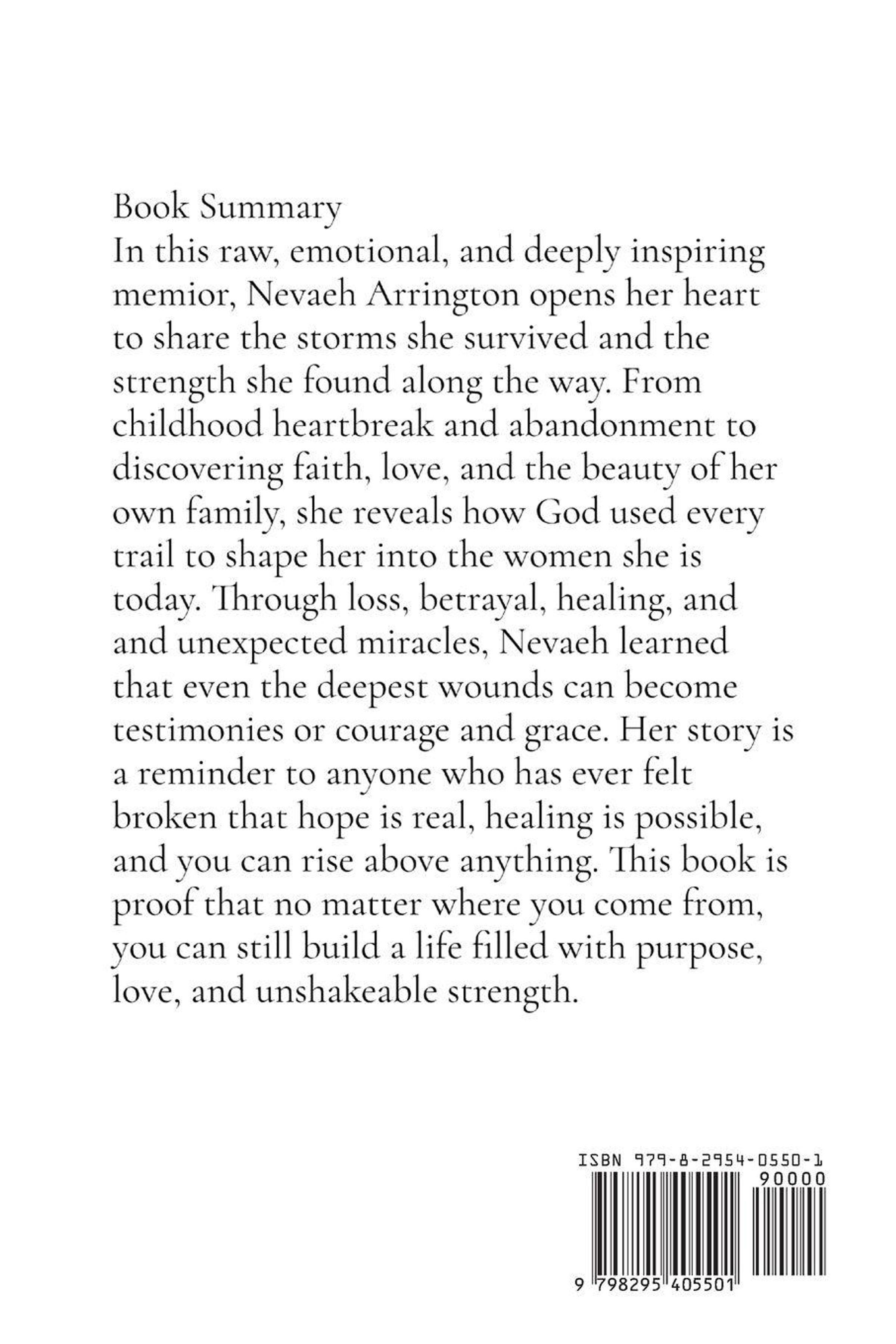 Set against the backdrop of a small family compound, late-night porch talks, laughter echoing through the halls, and dreams stitched together with hope, this book is a testament to survival and transformation. It explores motherhood, marriage, sisterhood, trauma, faith, and the fight to break every generational curse that once threatened to define her.