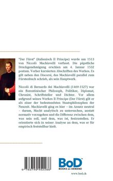 "Der Fürst" (italienisch Il Principe) wurde um 1513 von Niccolò Machiavelli verfasst. Die päpstliche Druckgenehmigung erschien am 4. Januar 1532 postum. Vorher kursierten Abschriften des Werkes. Es gilt neben den Discorsi, das Machiavelli parallel zum Fürstenbuch schrieb, als sein Hauptwerk.