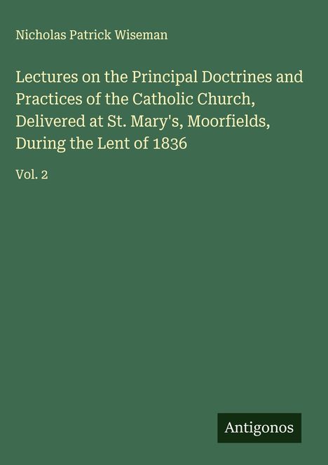 Nicholas Patrick Wiseman: Lectures on the Principal Doctrines and Practices of the Catholic Church, Delivered at..., Gebunden
