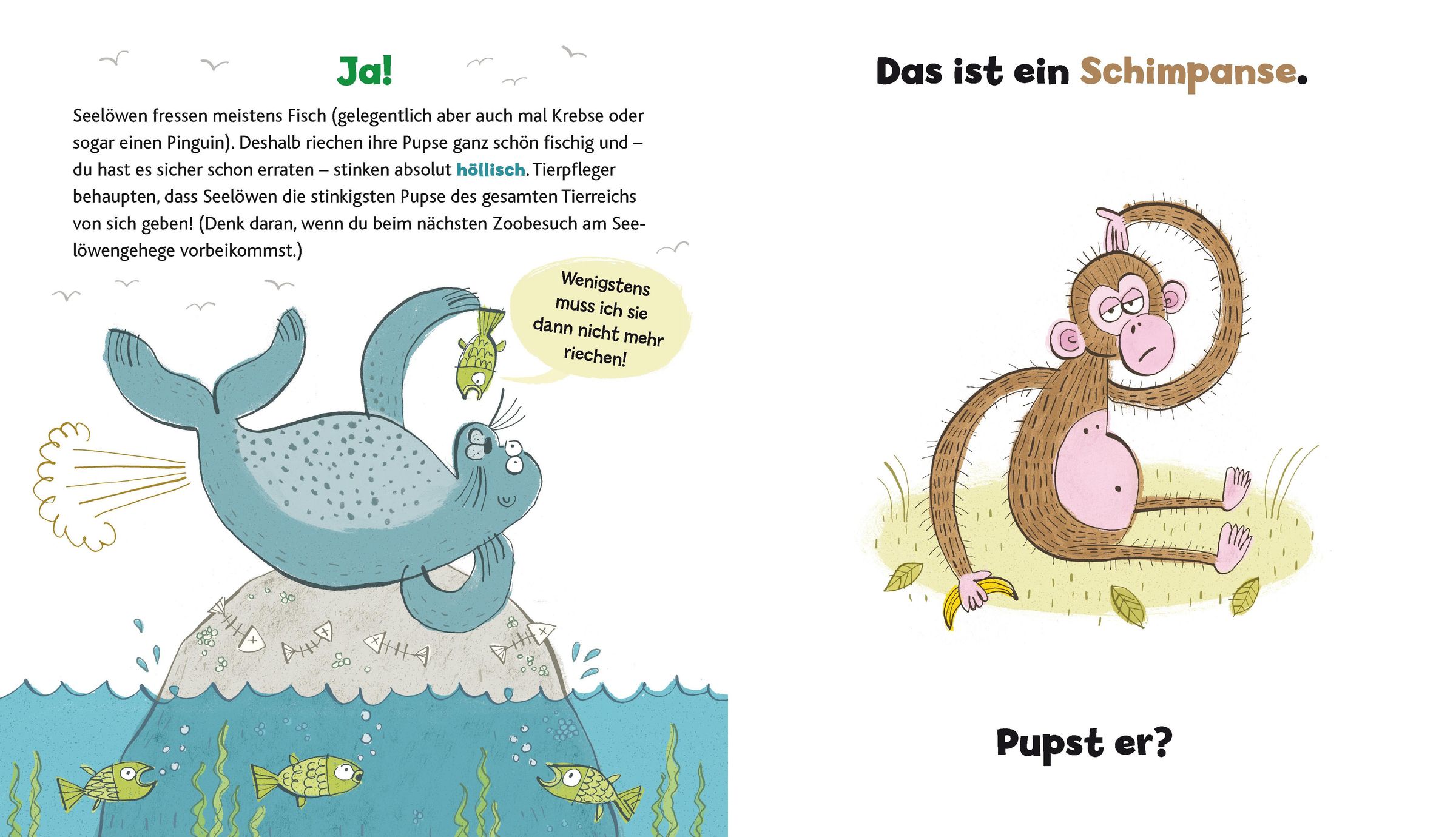 Dieses witzige Sachbilderbuch vermittelt humorvoll-kurioses Wissen um Pupse im Tierreich: Wer hätte gedacht, dass Ziegen an Bord den Feueralarm auslösen können? Oder dass Heringe einen geheimen Pupscode besitzen? Oder dass Wissenschaftler eine Stinkskala für Hundepupse entwickelt haben? Ein Riesenspaß für Kinder und Erwachsene. Kann schließlich jedem mal passieren ...