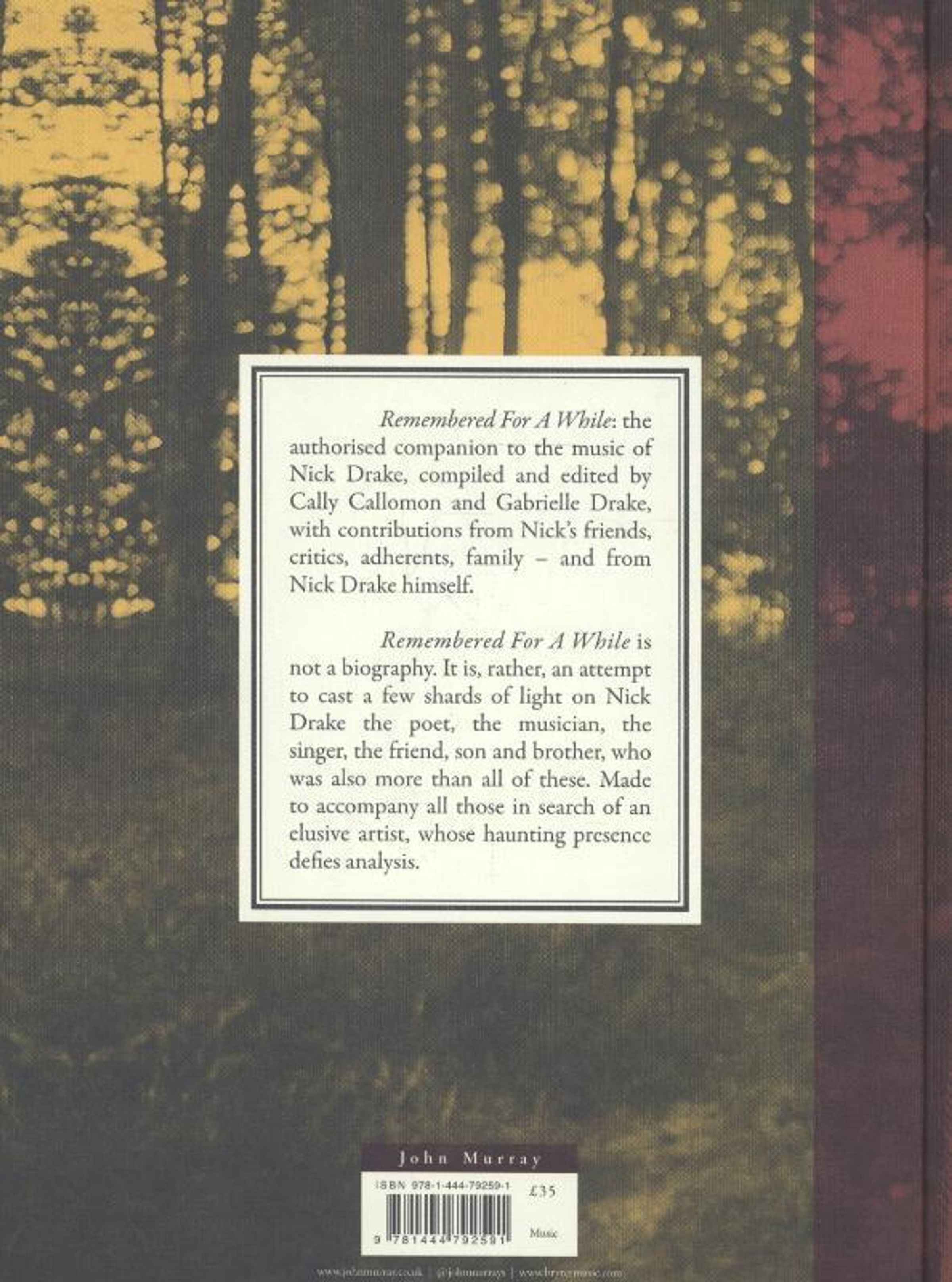 Remembered For A While is not a biography. It is, rather, an attempt to cast a few shards of light on Nick Drake the poet, the musician, the singer, the friend, son and brother, who was also more than all of these. We hope it will accompany all those in search of an elusive artist, whose haunting presence defies analysis.