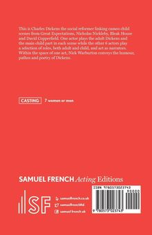 This is Charles Dickens the social reformer linking cameo child scenes from Great Expectations, Nicholas Nickleby, Bleak House and David Copperfield. One actor plays the adult Dickens and the main child part in each scene while the other 6 actors play a selection of roles, both adult and child, and act as narrators. Within the space of one act, Nick Warburton conveys the humour, pathos and poetry of Dickens. 7 women or men