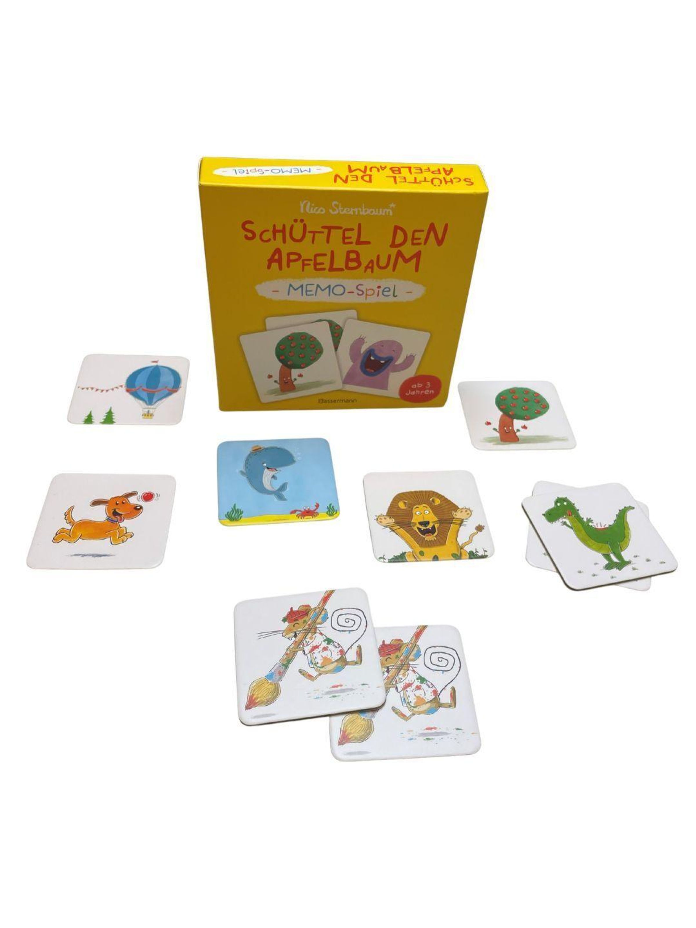 20 lustige Motiv-Paare machen das Apfelbaum-Memo zum idealen Spiel für die ganze Familie. Nach dem bekannten Prinzip werden immer zwei Spielkarten aufgedeckt, die ein Bilderpaar ergeben.