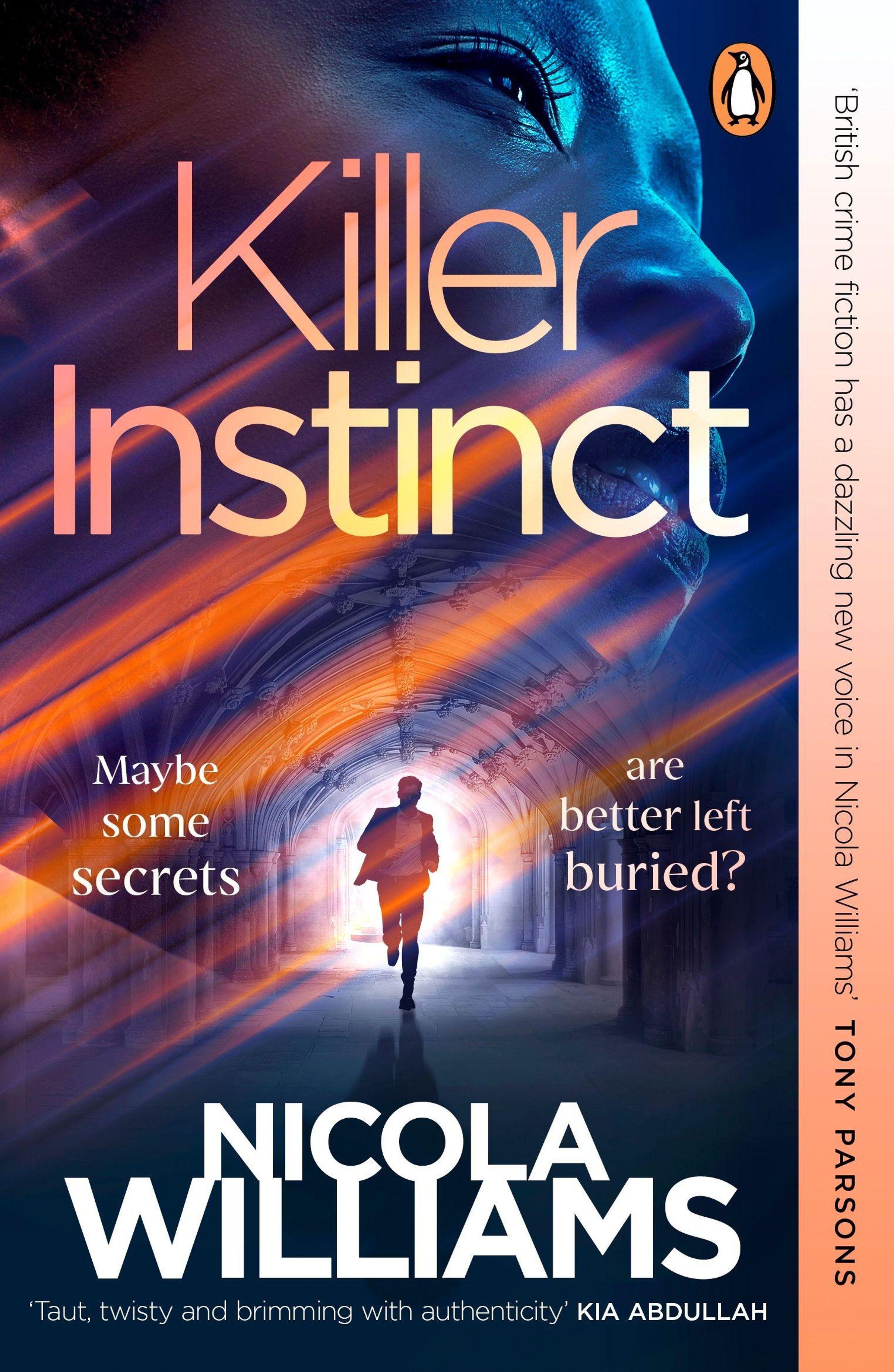 Texte: "Killer Instinct", "Maybe some secrets are better left buried?", "NICOLA WILLIAMS". Illustration: Person rennt in Tunnel., Buch