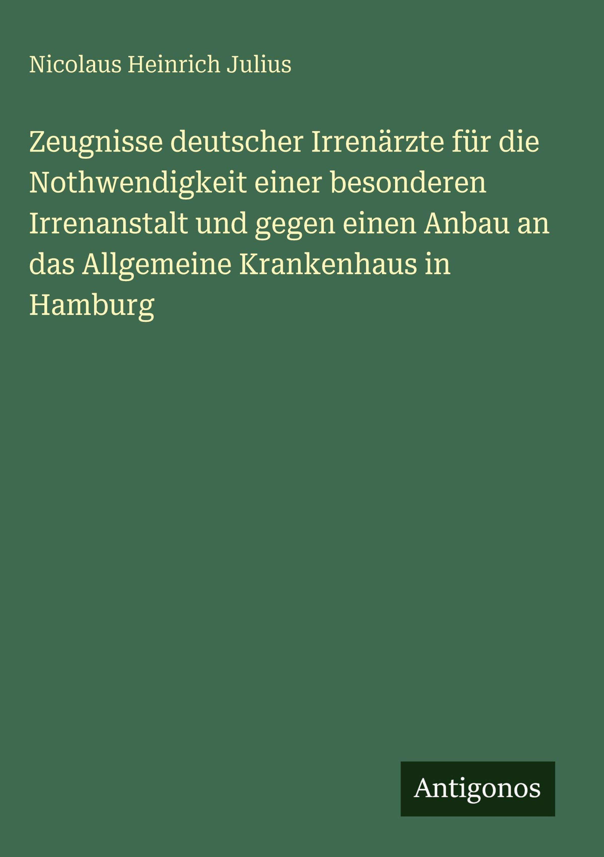Nicolaus Heinrich Julius: Zeugnisse deutscher Irrenärzte für die Nothwendigkeit einer besonderen Irrenanstalt..., Gebunden