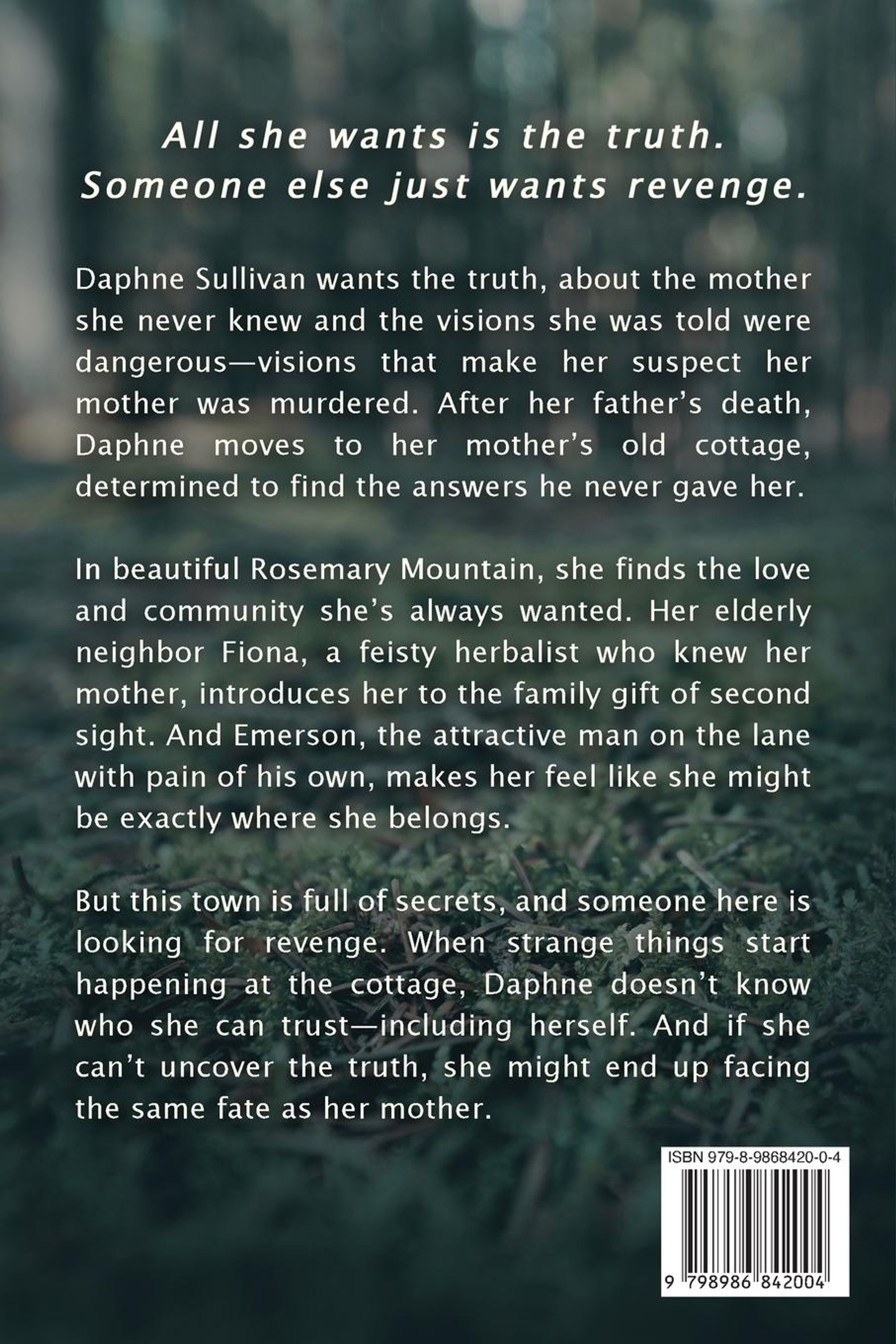 Daphne Sullivan wants the truth, about the mother she never knew and the visions she was told were dangerous-visions that make her suspect her mother was murdered. After her father's death, Daphne moves to her mother's old cottage, determined to find the answers he never gave her.