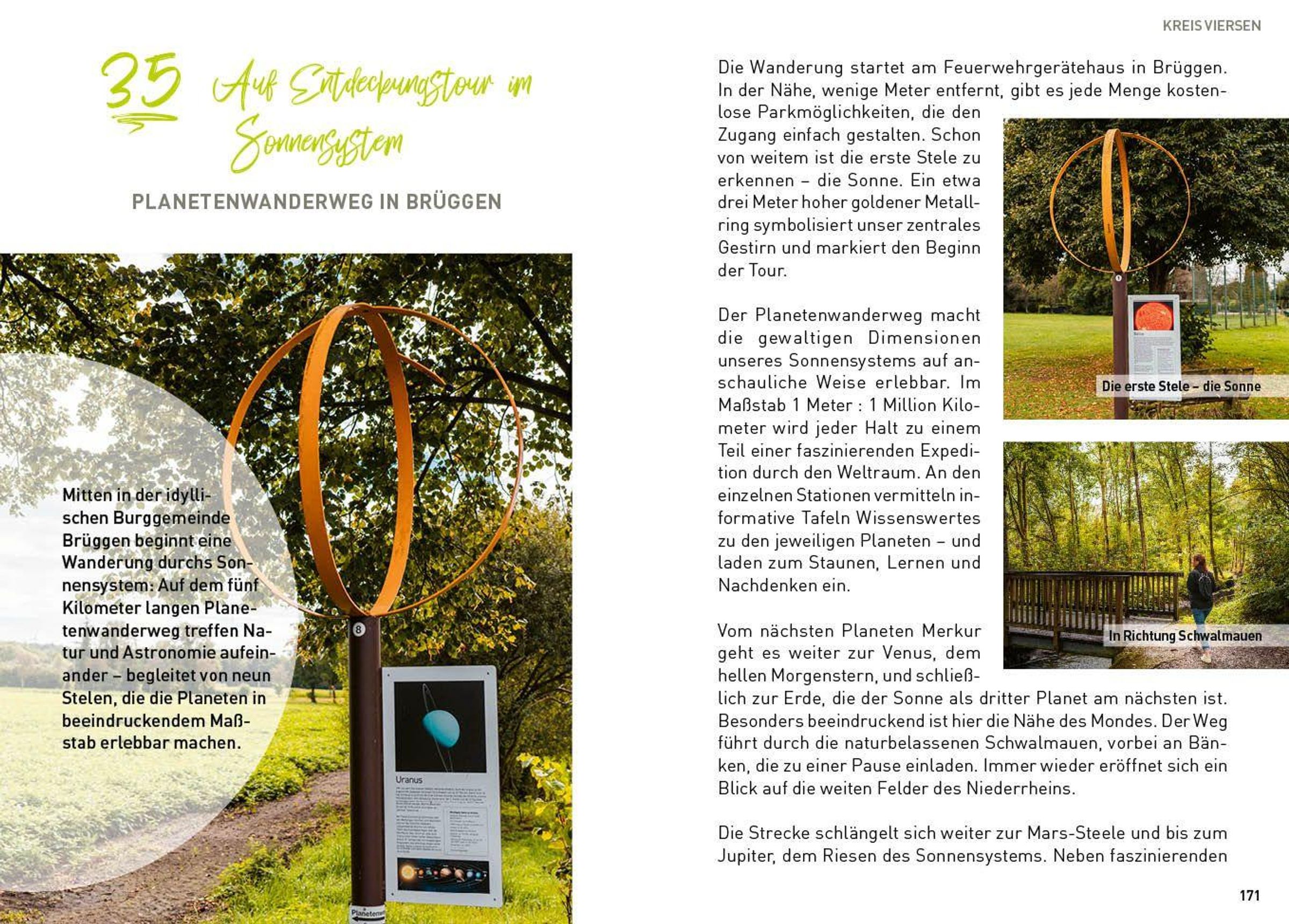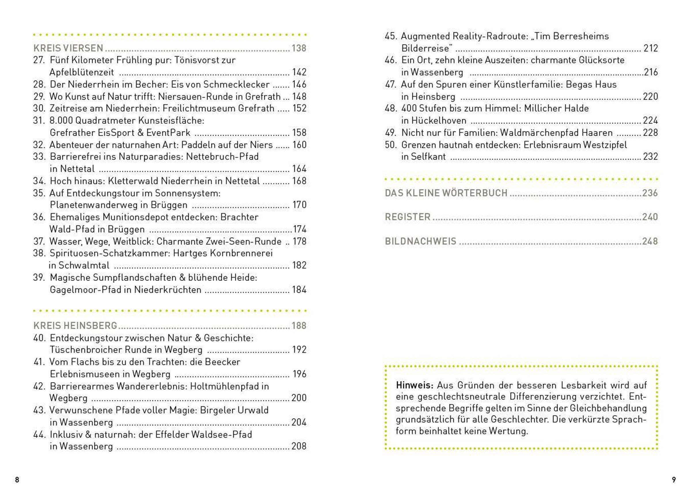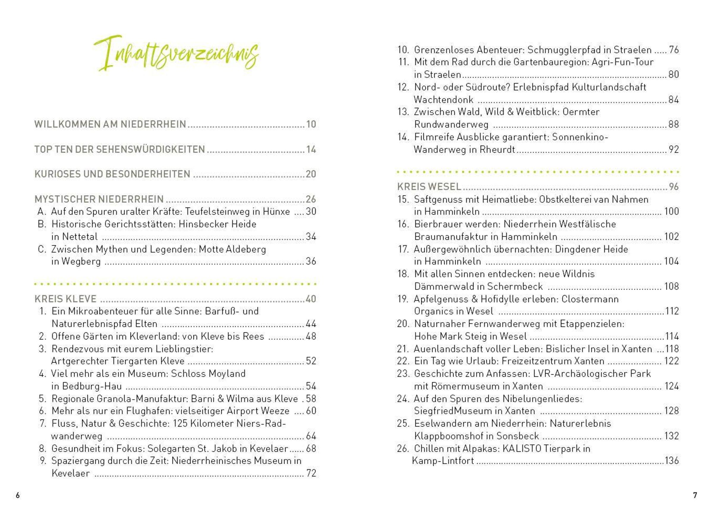 Die Autorin zeigt ihre Lieblingsorte, erzählt Geschichten von heimatverbundenen Menschen und öffnet die Tür zu kulturellen Schätzen, die Geschichte lebendig machen. Die Reise führt so zum beeindruckenden LVR-Archäologischen Park Xanten über den familienfreundlichen Schmugglerpfad in Straelen bis hin zu der außergewöhnlichen Augmented Reality-Radroute "Tim Berresheims Bilderreise" ab Wassenberg und dem erlebnisreichen Kletterwald Niederrhein in Nettetal. Oder wie wäre es mit ruhigeren Mikroabenteuern wie "Chillen mit Alpakas" im KALISTO Tierpark in Kamp-Lintfort? Jede Jahreszeit wird zur Bühne für neue Erlebnisse, jedes Kapitel zur Einladung, die eigene Heimat oder die Region neu zu entdecken.
