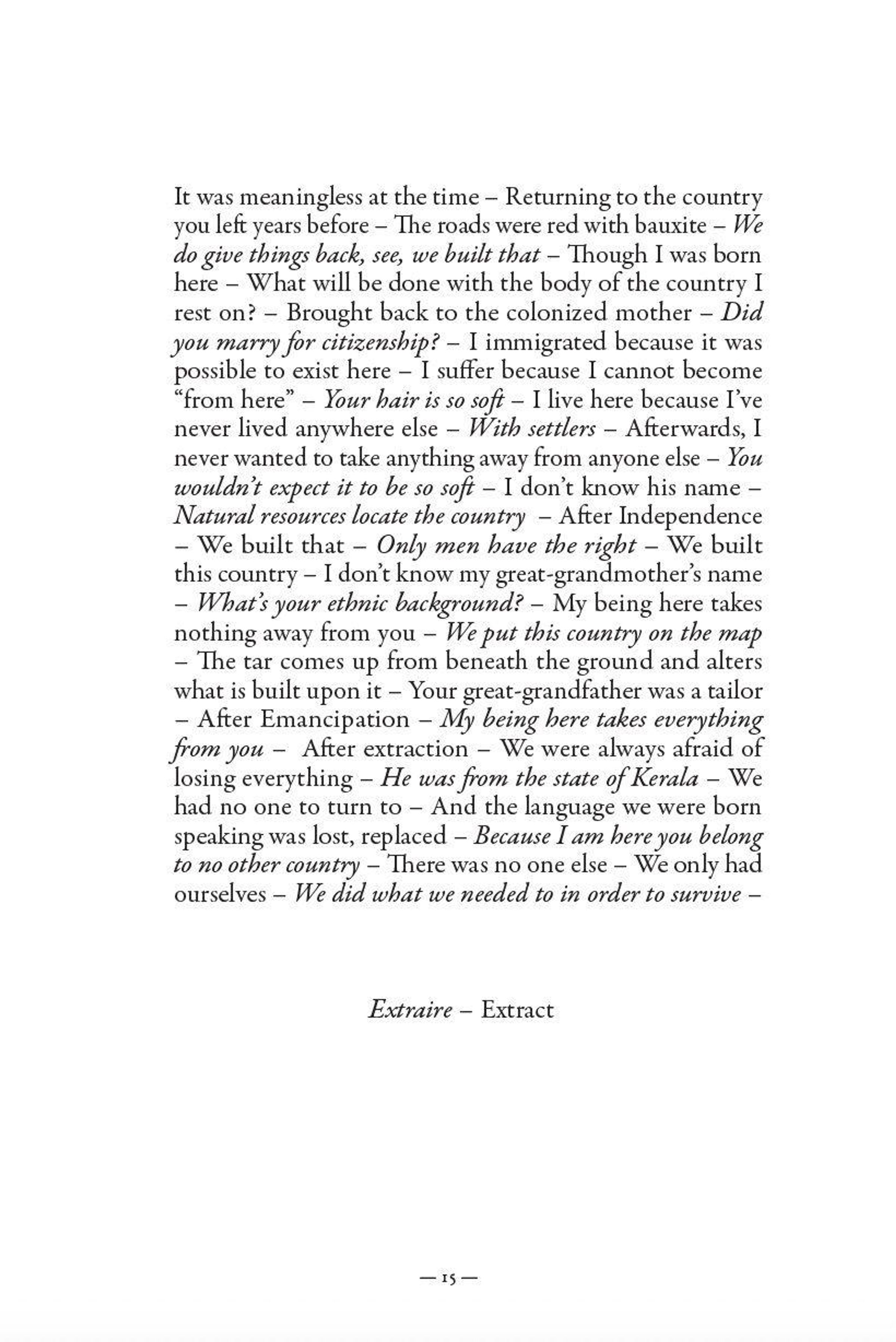 SUBTEXT refracts the language of identity formation. It collages the echoes of diasporic and colonial histories through poetry, drama, autobiography, and archival uncovering. Divided into four parts, SUBTEXT peers into the imperceptible psychic strata created by intergenerational trauma, confronting the challenge of finding one's place in a sensorium of concealed realities and obscured memories. Dwelling in the bubbling froth of dreamwork, these poems take a multifaceted approach to questions of diaspora and selfhood, incorporating visual and textual elements that dialogue with one another and ask readers to negotiate the unsteady shoals of identity and history.