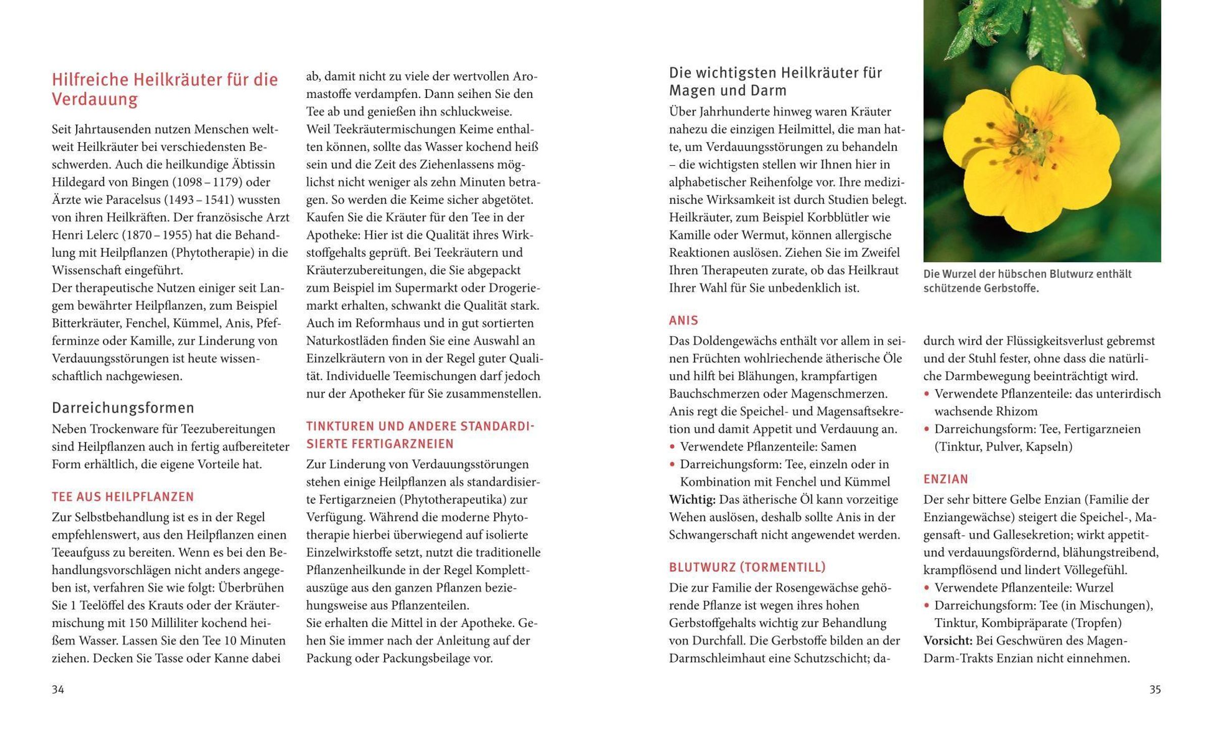 Niemand sollte sich mit dem Leidensdruck abfinden, der mit stressbedingten Magenschmerzen, ständigen Blähungen oder Durchfall, häufigem Sodbrennen oder mit den unangenehmen Auswirkungen eines trägen Darms verbunden ist. Hier kann gerade die Naturheilkunde wertvolle Dienste leisten: Sie bietet bewährte Methoden, mit denen Verdauungsbeschwerden auf sanfte, aber nachhaltige Weise gelindert und sogar geheilt werden können. Nach einer einführenden Beschreibung, wie unser Verdauungssystem funktioniert, erfährt man im Einzelnen, welche Verfahren bei welchen Beschwerden zum Einsatz kommen: Dort werden die wichtigsten Maßnahmen der Natur- und Pflanzenheilkunde sowie häufig eingesetzte Akutmittel der Homöopathie genannt. Zudem werden Tipps für eine auf das jeweilige Beschwerdebild abgestimmte Ernährung sowie für eine gesundheitsfördernde Lebensweise gegeben. In den Innenklappen werden die wichtigsten Ernährungsregeln und die beste Schonkost beschrieben.