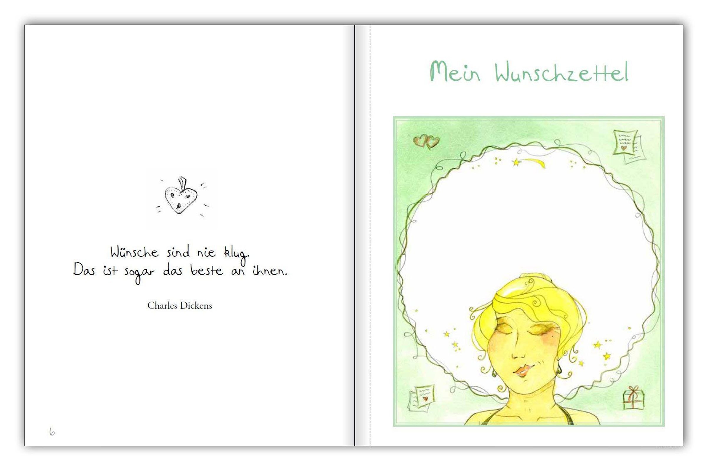 Wünsch dir was! Das Wunschzettelbuch versammelt alle deine Wünsche. Du kannst es füllen und beschreiben mit deinen Träumen und Ideen, ausmalen und weiter gestalten, wie es dir gefällt, oder es mit deinen Freundinnen und deiner Familie teilen. Deine Lieben sollen deine Wünsche nicht vergessen? Dann gib ihnen zur Erinnerung einen Wunschzettel mit. Dein Partner möge an das richtige Geschenk für dich denken? Ein stilvoller Wunschzettel erinnert daran. Ein Wünsch-Dir-Was-Nachmittag mit deinen Freundinnen? Na klar! Jeder, der Ideen hat, hat auch Wünsche. Das Wunschzettelbuch kann deine Träume und Hoffnungen als Sammelband bewahren. Lass deiner Phantasie freien Lauf und wünsch dir was! Zusätzlich zu den 42 wunderschönen, in Nicole Schäuflers kleinem Atelier entstandenen Aquarellen und Zeichnungen findest du auf der Rückseite jedes Wunschzettels liebevoll ausgewählte Wunsch-Texte: Gedichte, Zitate und Filmszenen, die Wünsche und das Wünschen zum Inhalt haben. Sie bringen die vielen Facetten unserer Wünsche zum Ausdruck und belegen, dass Wünsche und ihre Erfüllung tiefe Sehnsüchte in uns stillen. "Nichts ist erquickender, als von unsern Wünschen zu reden, wenn sie schon in Erfüllung gehen." (Novalis) "Ich will genau das, was SIE hatte!" (Die Frau am Nachbartisch im Restaurant im Film "Harry und Sally" von Rob Reiner, U. S.A. 1989) "Eigentlich ist alles nichts, heute hält's, und morgen bricht's, hin stirbt alles, ganz geringe wird der Wert der ird'schen Dinge; doch wie tief herabgestimmt auch das Wünschen Abschied nimmt, immer klingt es noch daneben: Ja, das möcht' ich noch erleben." (Theodor Fontane) "Ich bin zu alt, um nur zu spielen, zu jung, um ohne Wunsch zu sein." (Faust in Faust I, Johann Wolfgang von Goethe)