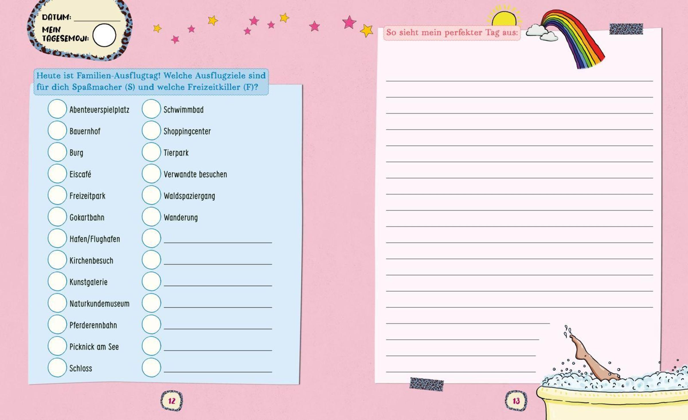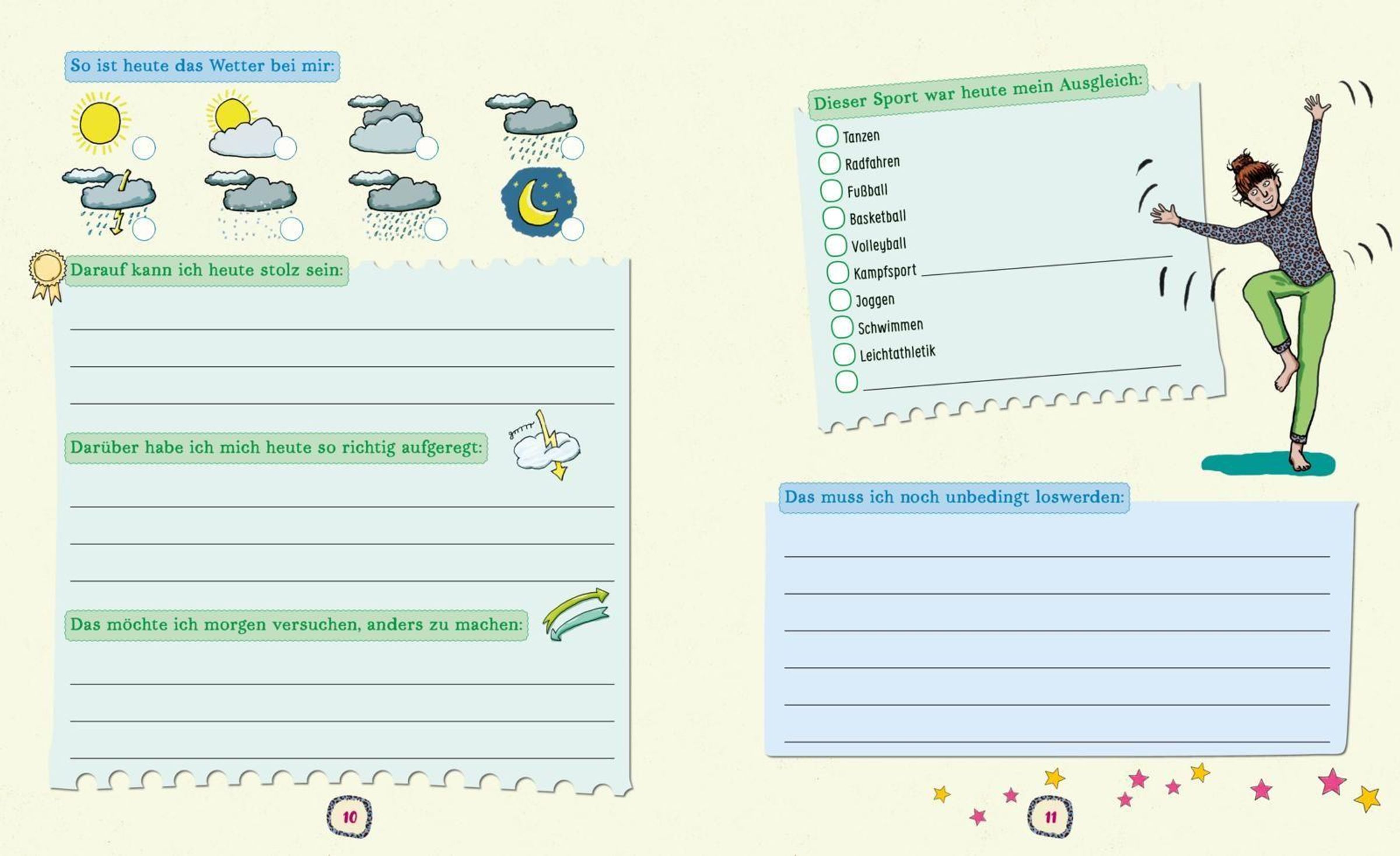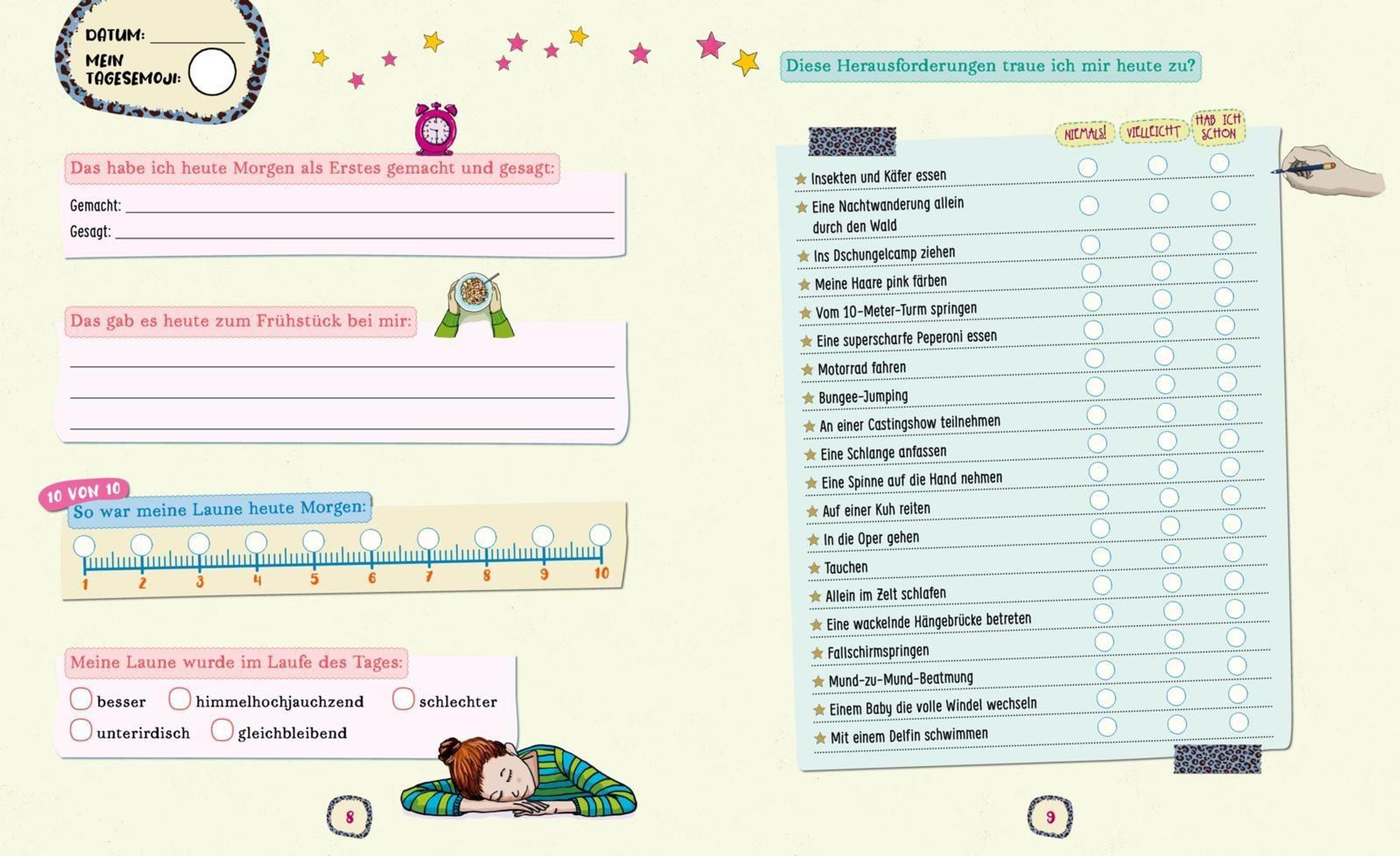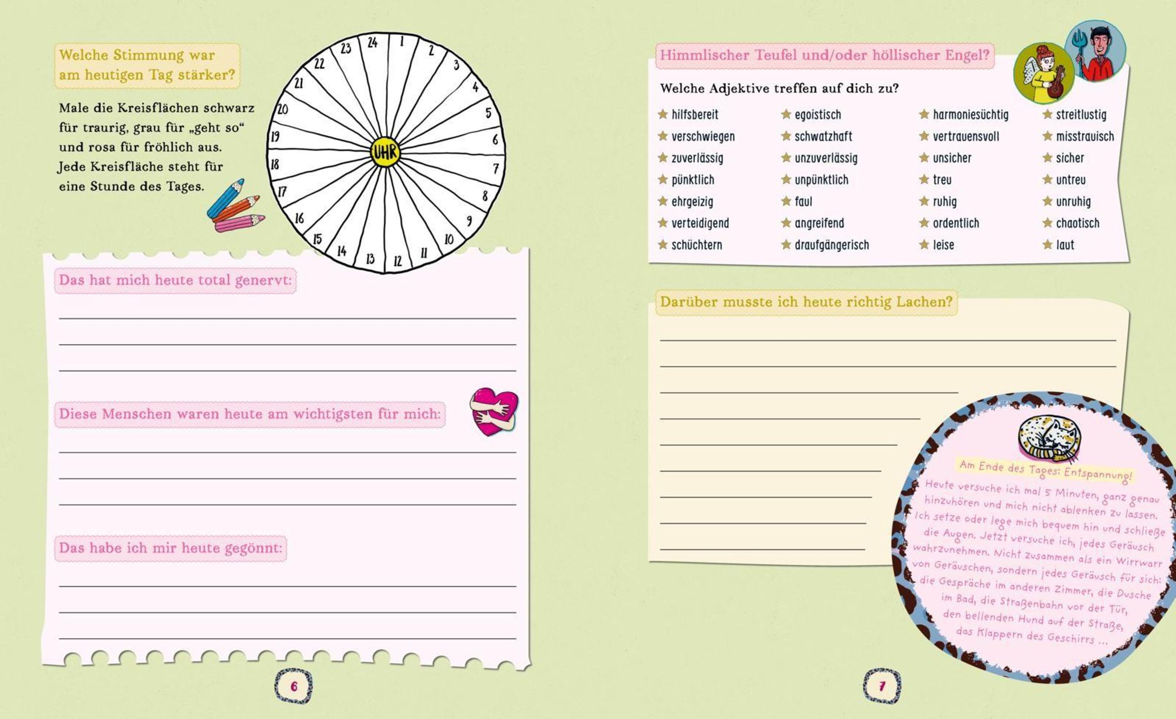 Dieses Mädchen-Tagebuch verbindet freies Schreiben mit spannenden Mitmachideen. Fragen, Listen, Tests, Schreibideen, Sprüche und kleine Entspannungsimpulse laden dazu ein, Gedanken, Gefühle und Erlebnisse auf kreative Weise festzuhalten. Ohne festen Anfang lässt sich das Buch flexibel nutzen - Seite für Seite oder genau dort, wo es gerade passt.