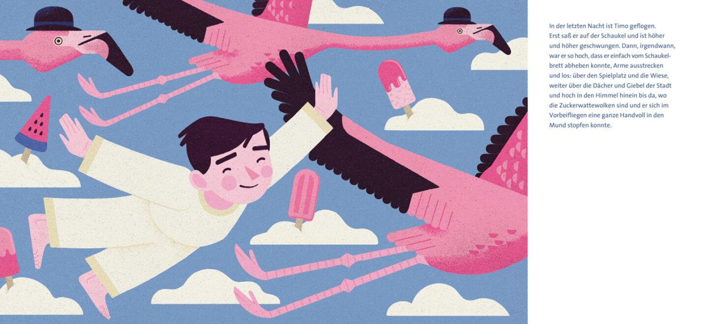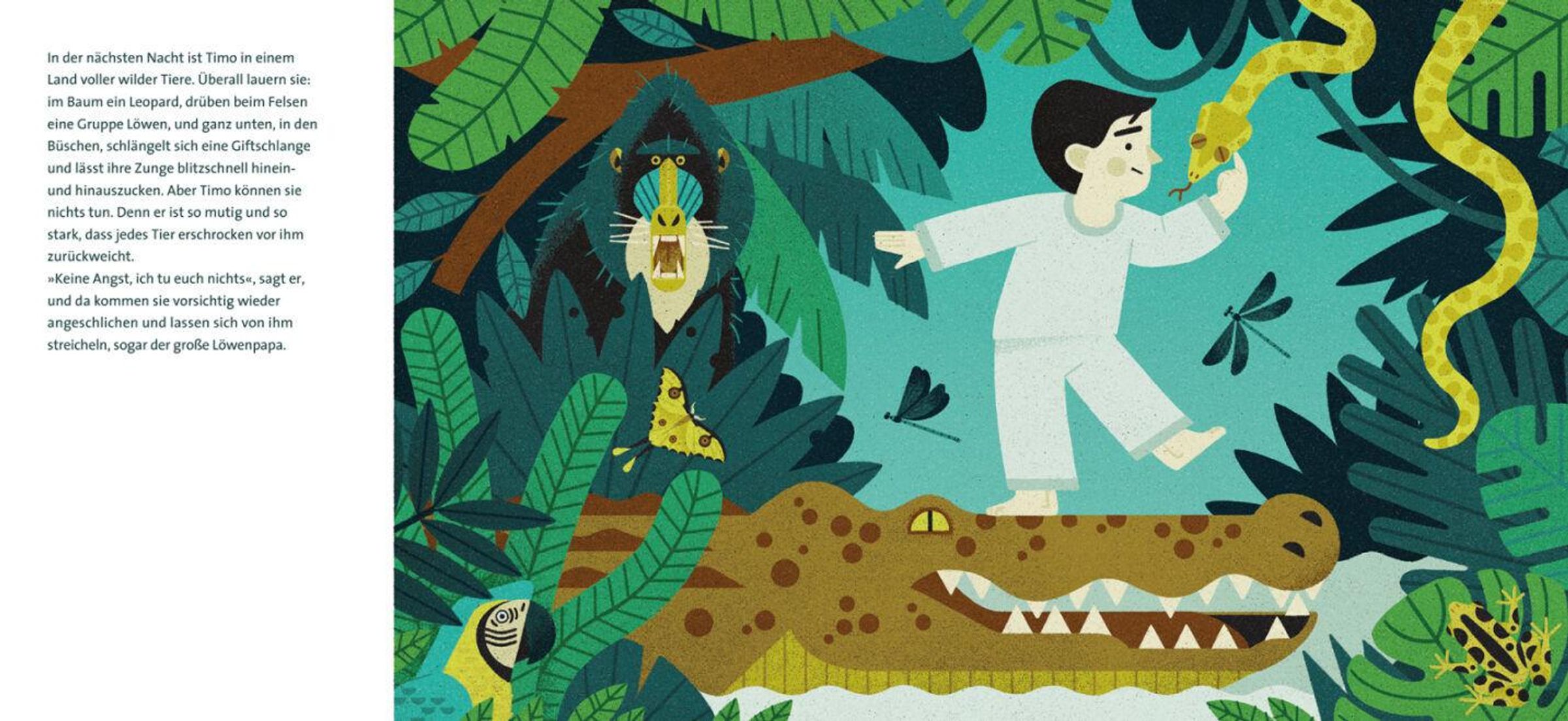 Timo taucht jede Nacht in seinen Träumen in eine andere Welt! Am Tag erzählt er dann im Kindergarten von seinen nächtlichen Erlebnissen: Er reist durch Zuckerwattewolken, streichelt Löwen und Leoparden und fährt ein Feuerwehrauto. Doch die anderen Kinder machen sich nur darüber lustig, denn Timo ist in der realen Welt nicht gerade der Mutigste. Nur die kleine Ava ist seine stille Verbündete, denn sie hat längst verstanden, was Timo richtig gut kann: Träumen! Und als Timo eines Nachts träumt, dass Ava mit ihm spielen möchte, fasst er sich ein Herz und spricht sie am nächsten Tag darauf an. Eine wunderbare Freundschaft entsteht. Träume können also doch wahr werden!