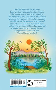 Inmitten einer endlosen Waldlandschaft steht einsam auf einem Berg das Haus am See, in dem Agda, Nick und Jula die Ferien mit Papa verbringen. Der entlegene Ort steckt voller Geheimnisse und Abenteuer. Auch das Auftauchen des Landstreichers Pepe gibt Rätsel auf. Und dann verschwindet Nick spurlos. Hat er sich etwa allein auf die gefährliche Suche nach dem Waldgoldschatz begeben?