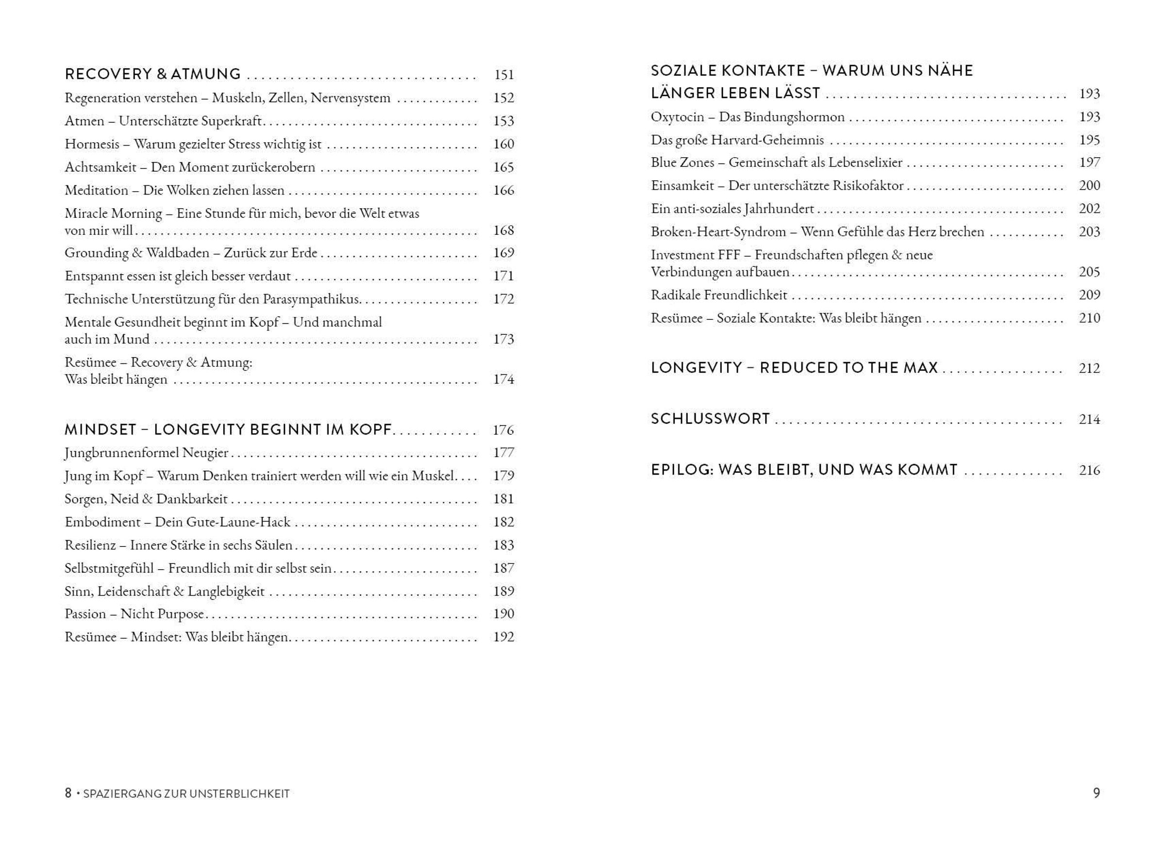 Doch statt die Erkenntnisse dieser Gespräche in Tabellen zu pressen oder in dogmatische Biohacks zu verwandeln, macht Behrens etwas Ungewöhnliches: Er nimmt die Leser: innen mit durch die großen Themen der Langlebigkeitsforschung - Bewegung, Ernährung, Schlaf, Prävention, mentale Gesundheit, soziale Bindungen - ohne die überhöhten Versprechen der Szene, aber mit dem nötigen Staunen für die echten Fortschritte.