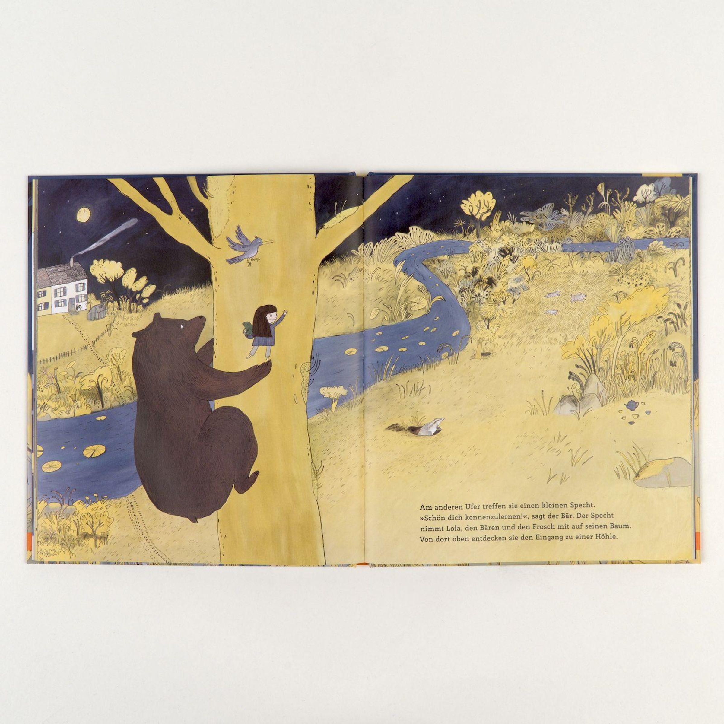 Lola ist neu in der Stadt und noch ein bisschen schüchtern. Doch in einer magischen Nacht passiert das Wunderbare - ihr Kuscheltier verwandelt sich in einen lebendigen Bären. Die beiden klettern aus dem Fenster und ziehen los in den wilden Wald hinter dem Haus. Dort treffen sie auf neue Freunde und erleben ein großes Abenteuer.