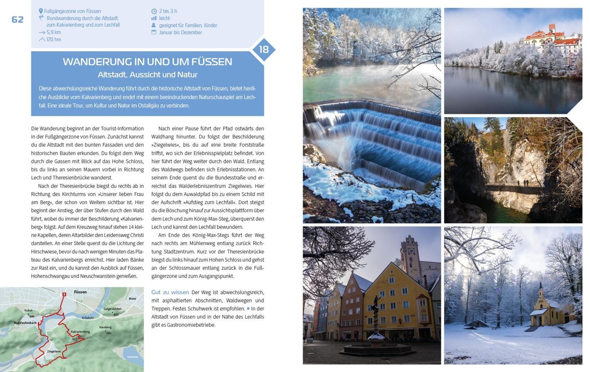 "Wir wandern in Bayern", "Die 50 schönsten Touren für jede Jahreszeit", Bilder von Natur mit Seilbahn, Kuh, Wanderer und Winterlandschaft., Buch