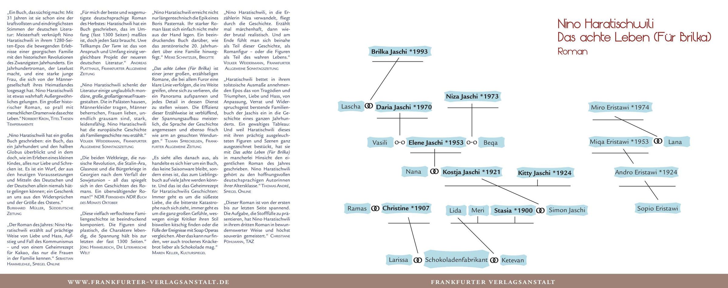'Nino Haratischwili hat die europäische Geschichte als Familiengeschichte neu erzählt.' Volker Weidermann, FAS
