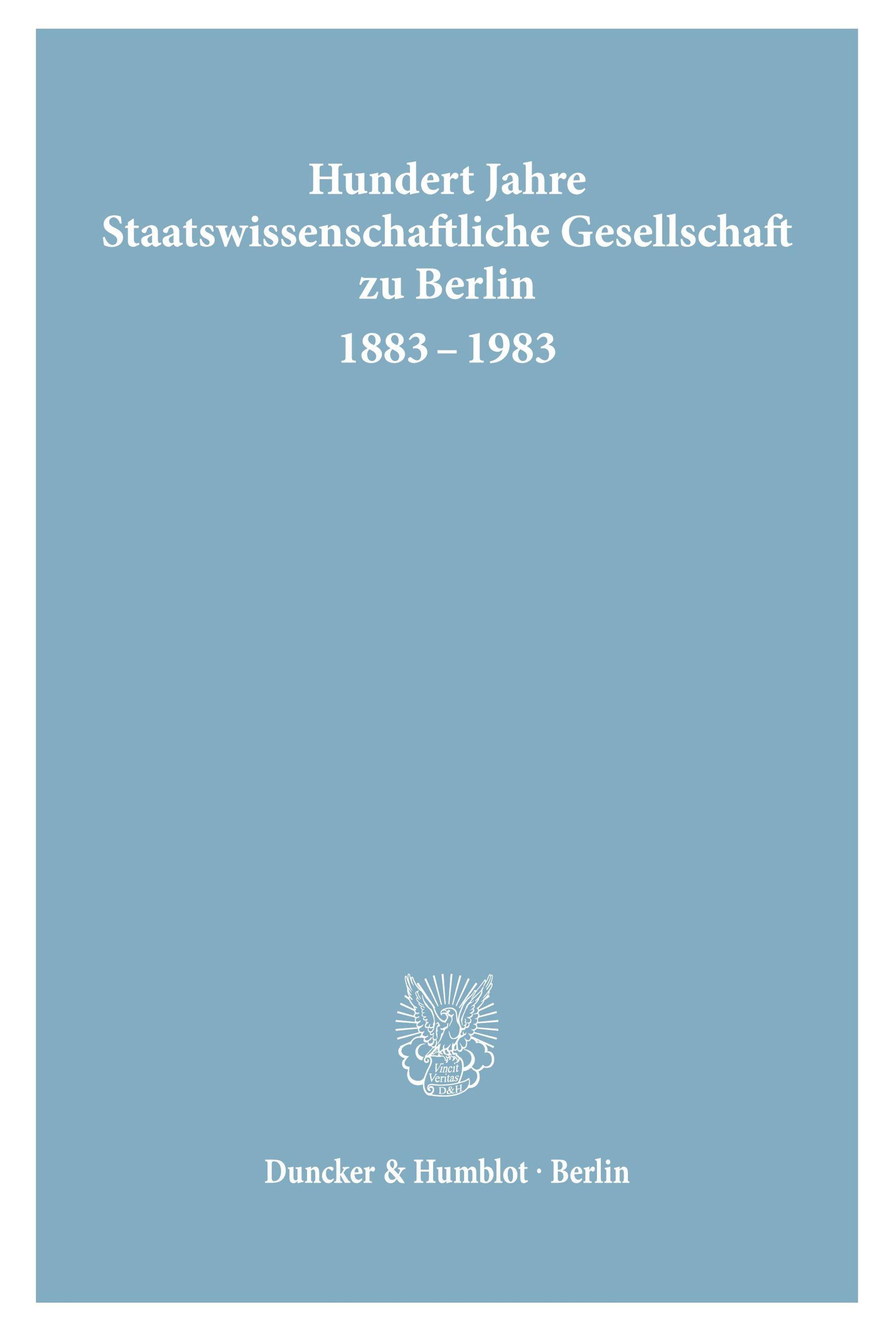 Hundert Jahre Staatswissenschaftliche Gesellschaft zu Berlin 1883 - 1983.