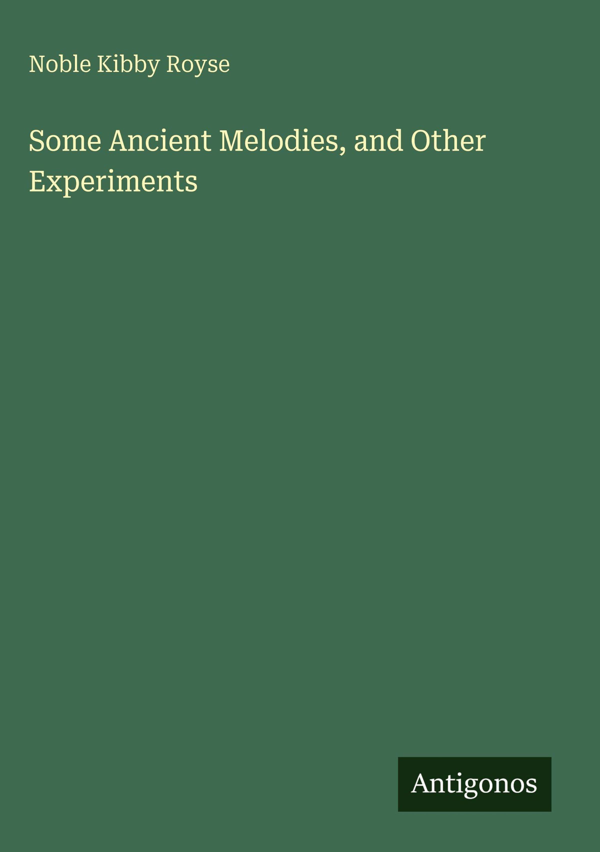 Noble Kibby Royse: Some Ancient Melodies, and Other Experiments, Gebunden